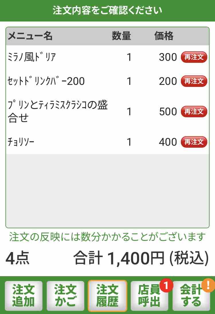 注文ポチっと押下し