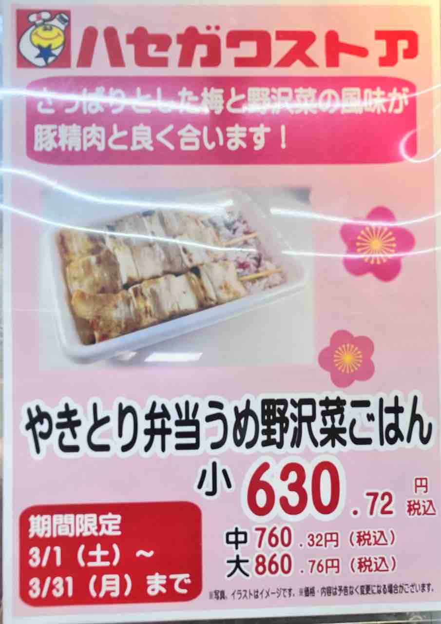先日仕事終わりに やきとり弁当が食べたくなりまして ちょいとハセガワストアに立ち寄って参りました