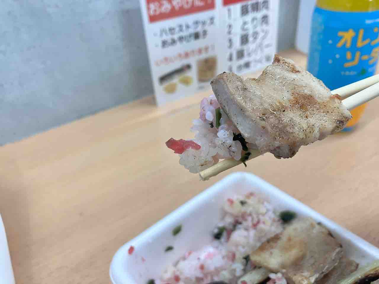 求めたものは こちらになりまして やきとり弁当うめ野沢菜ごはん です