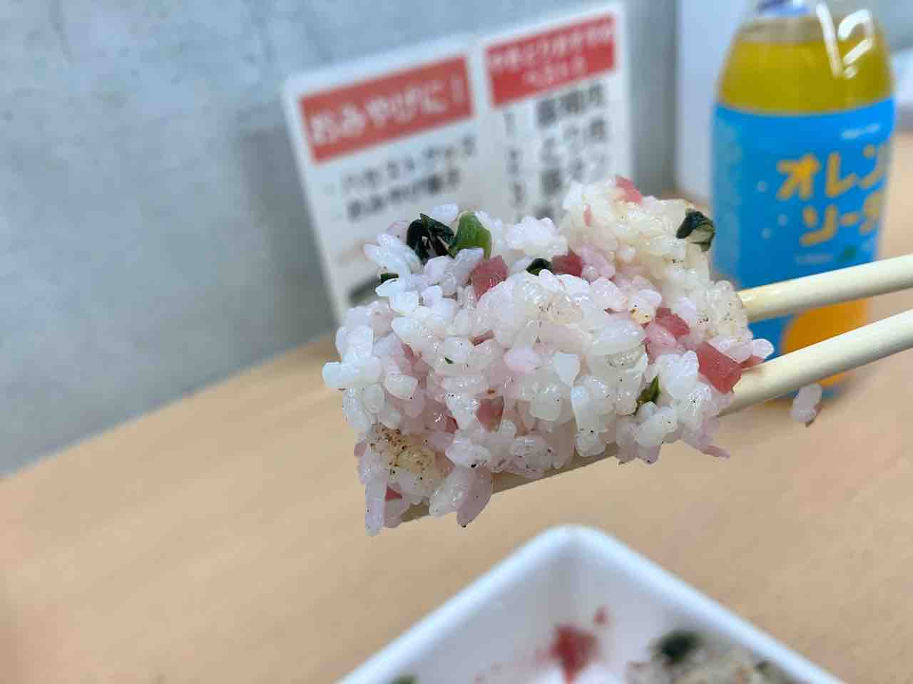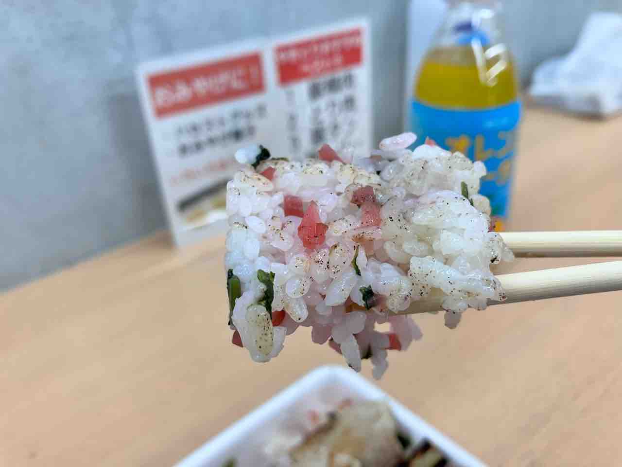 うめ野沢菜ごはんも食べてみると梅のカリっとした食感、そして塩っぱさ、酸っぱさが絶妙で ごはんも旨し!