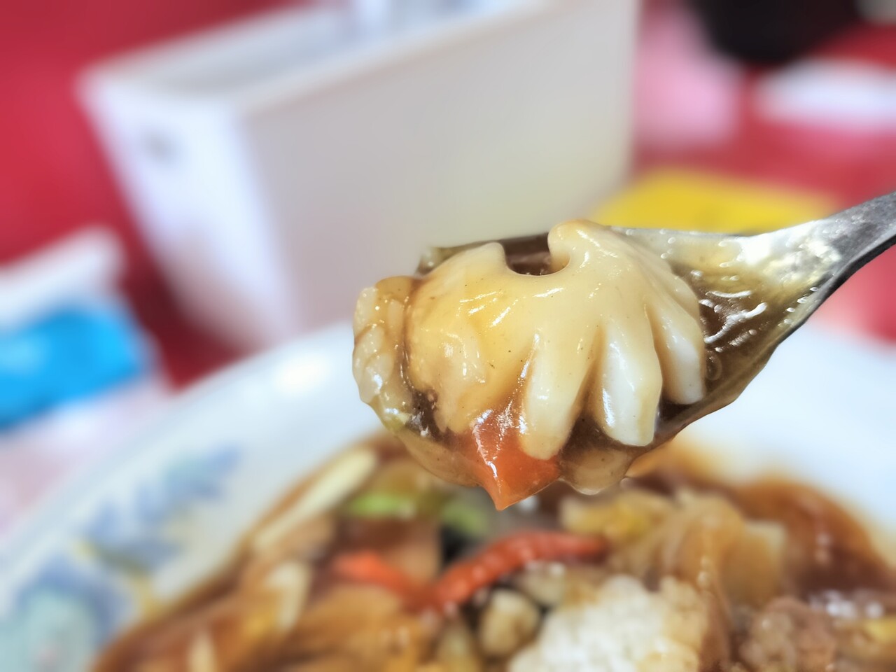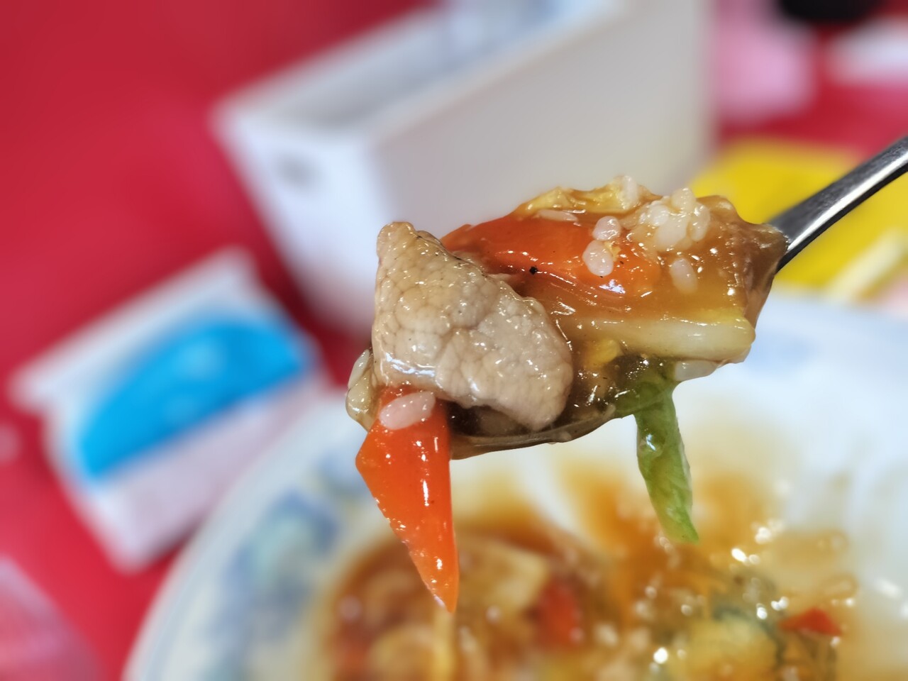 人参、豚肉 本当にボリュームもある中華丼ですが食べやすくサラっと完食できました