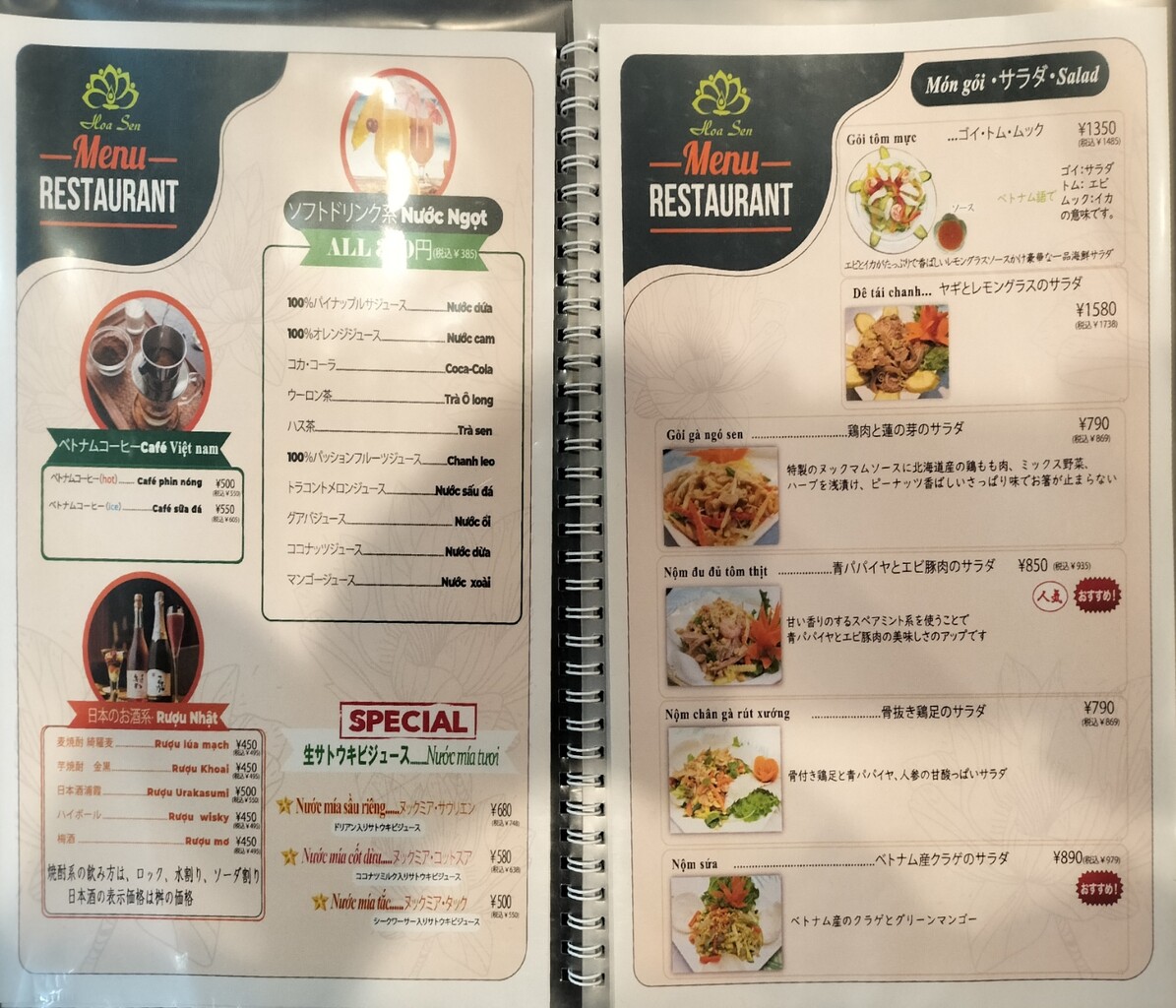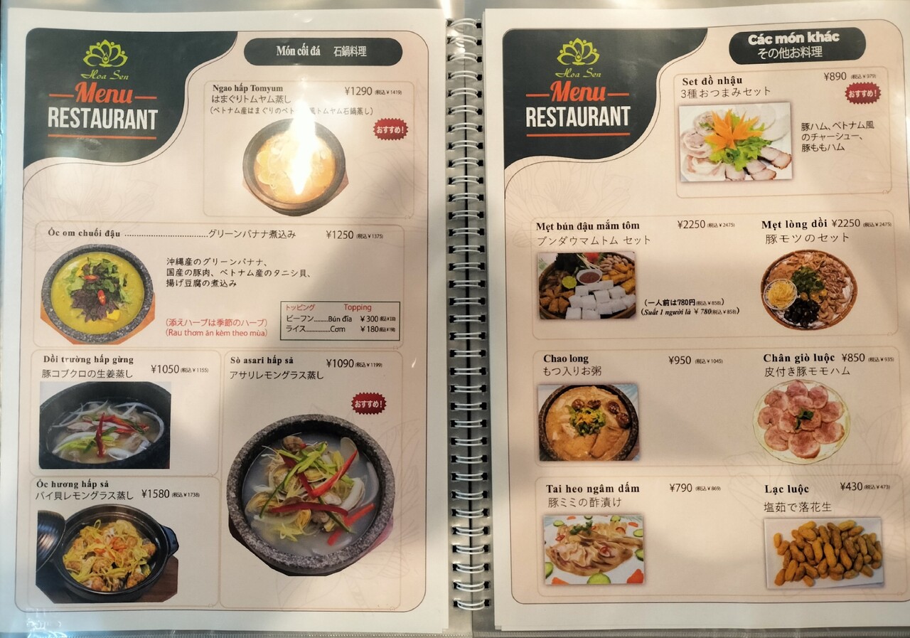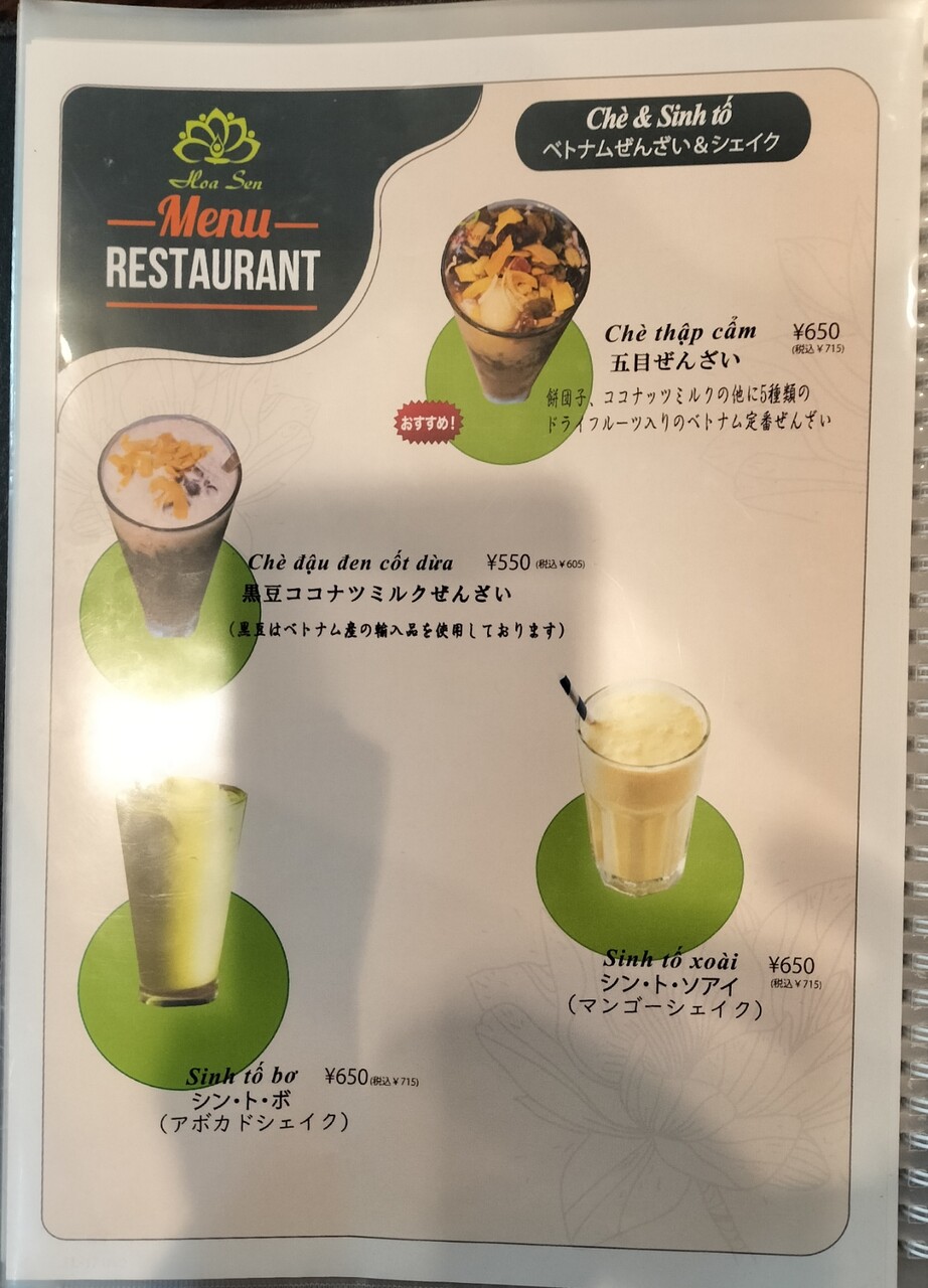 沢山メニューがあって迷ったのですが ベトナムと言えば フォー、ブン、生春巻きもありますが バインミーも有名ですよねって事で バインミー(¥869)を頼み、他はドリンクはグアバジュース(¥385)、もう一つブンダウマムトムセット2人前(¥1,716)もオーダーします