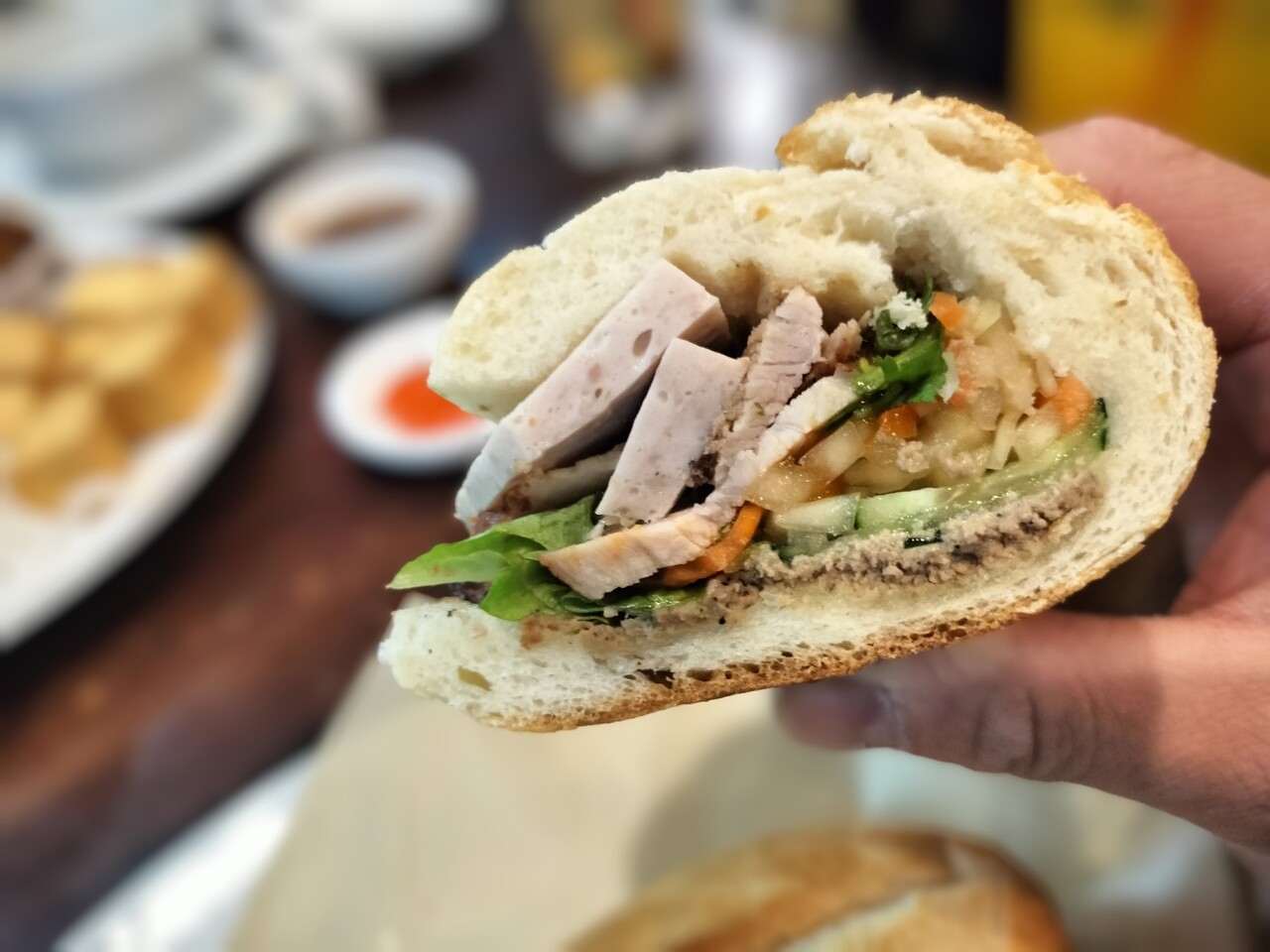 バインミーの断面はこんな感じで とってもボリューミーなんです