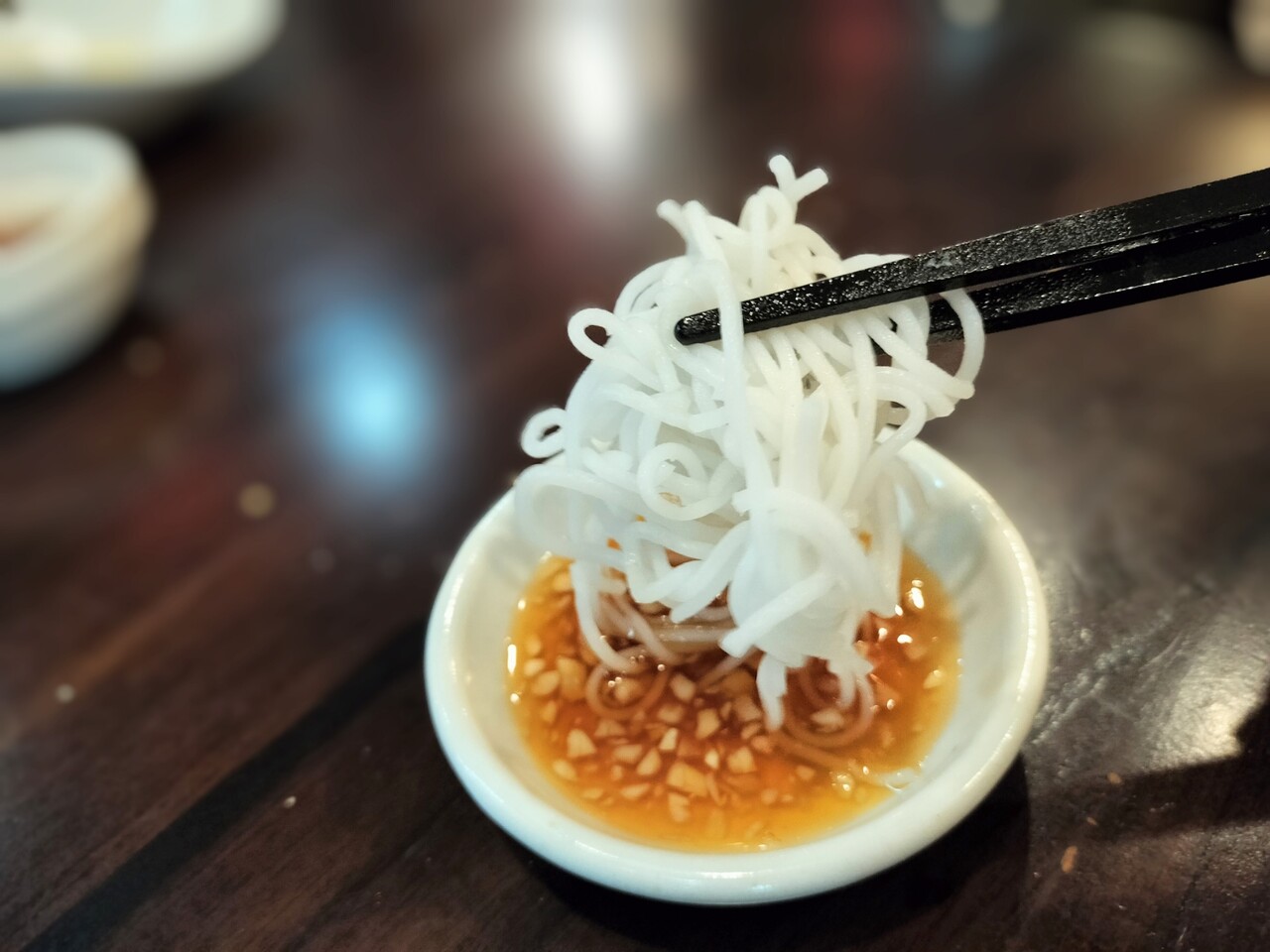 最初の付けタレが あまりにも臭いが無理っぽくて別のタレを用意してもらいました。ニンニクバリバリ効いてるヌクマム入りのタレです