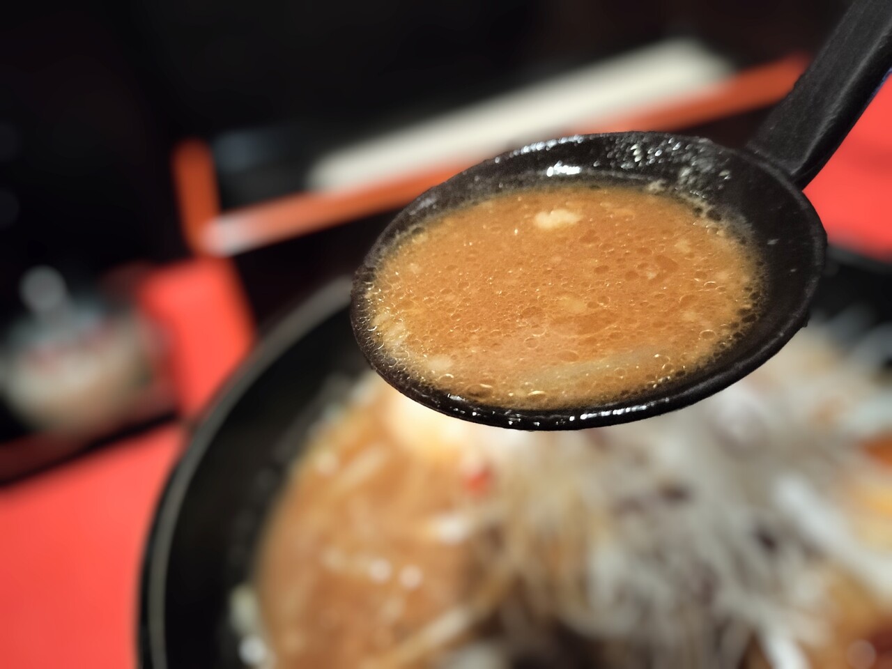 ニンニクをスープに溶かして飲むと 赤味噌ベースのスープにはコクがあり濃厚かつ深みのあるスープで バリバリ美味い!