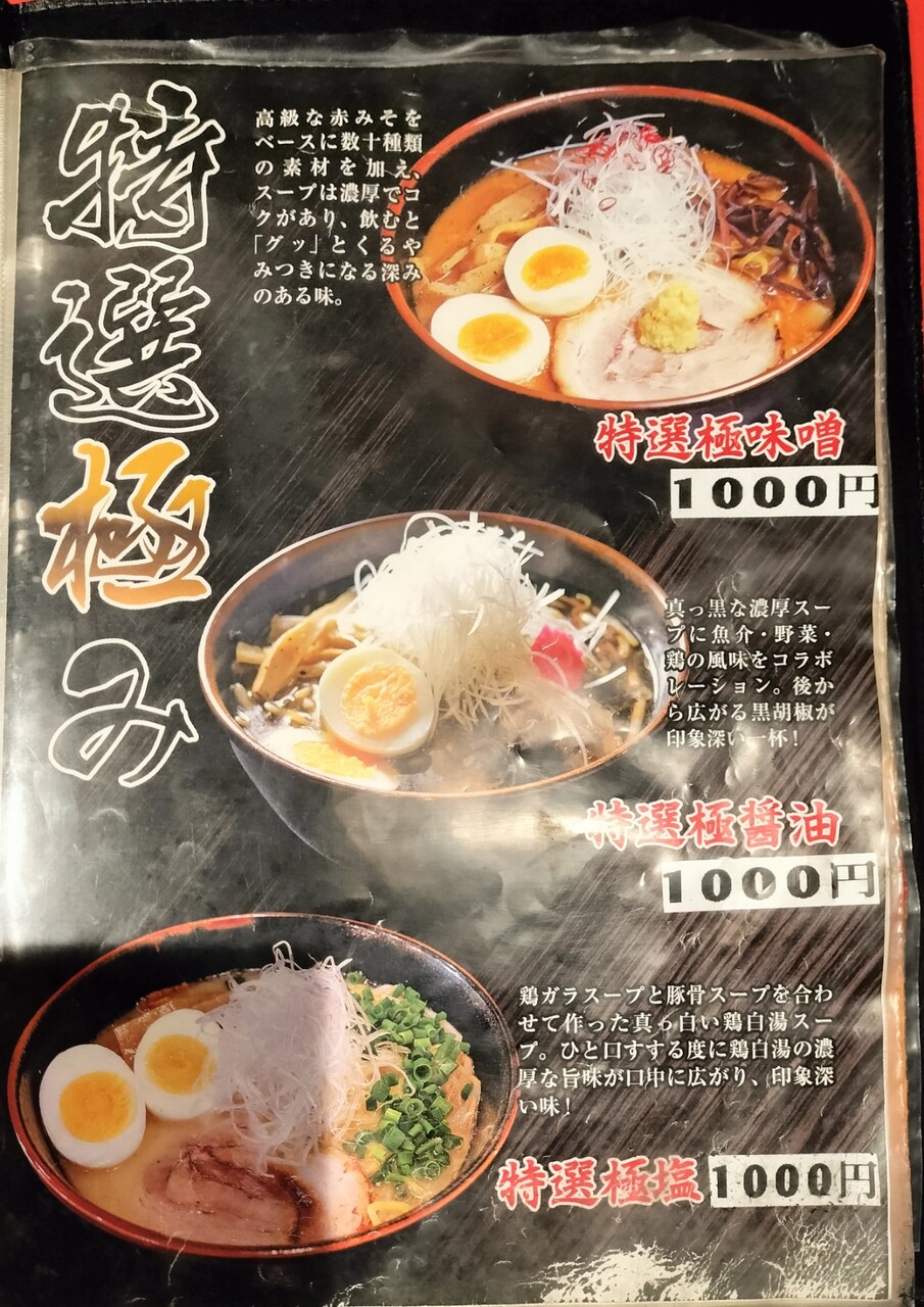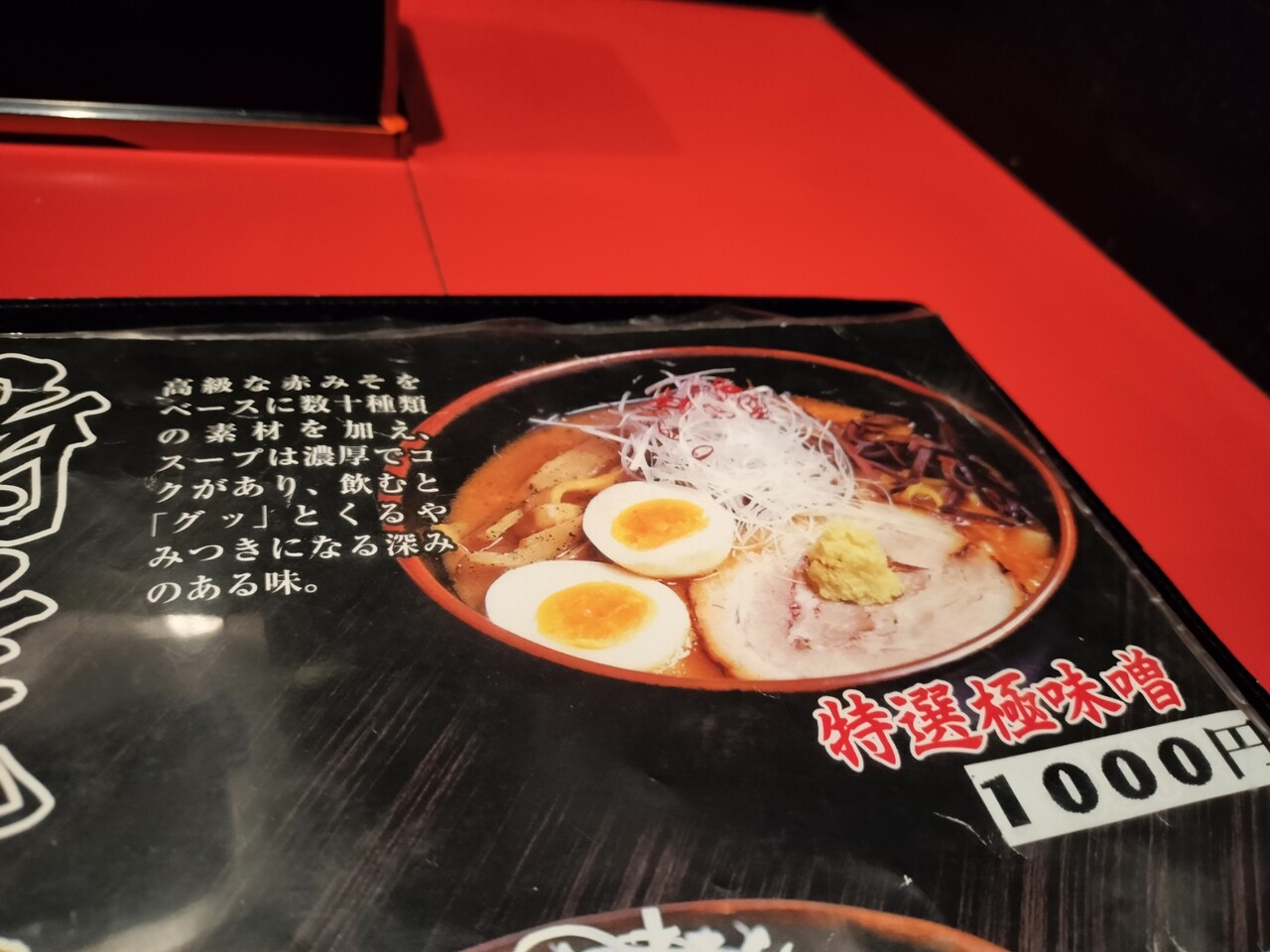 色々メニューはありまして迷いましたが今回は 特選極味噌(¥1,000)こちらをオーダーしたいと思います