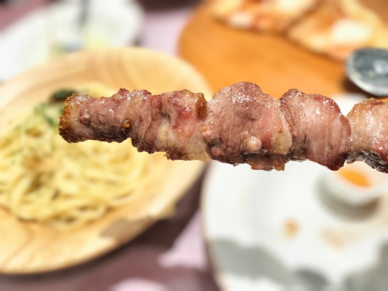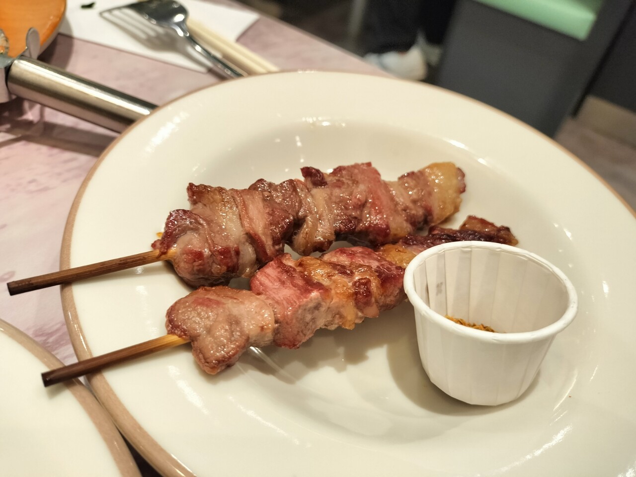 アロスティチーニ…ラム(子羊)の串焼きは嫌な臭みがなく柔らかくジューシーでこれも美い