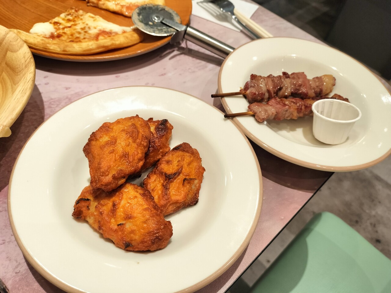 旨辛チキン(¥400)、アロスティチーニ(¥400)