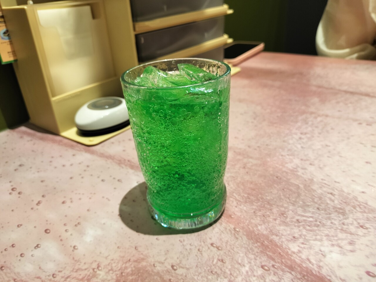パクパク食べて程なくして完食で ちょいとドリンクバーでメロンソーダを追加で堪能して退店です
