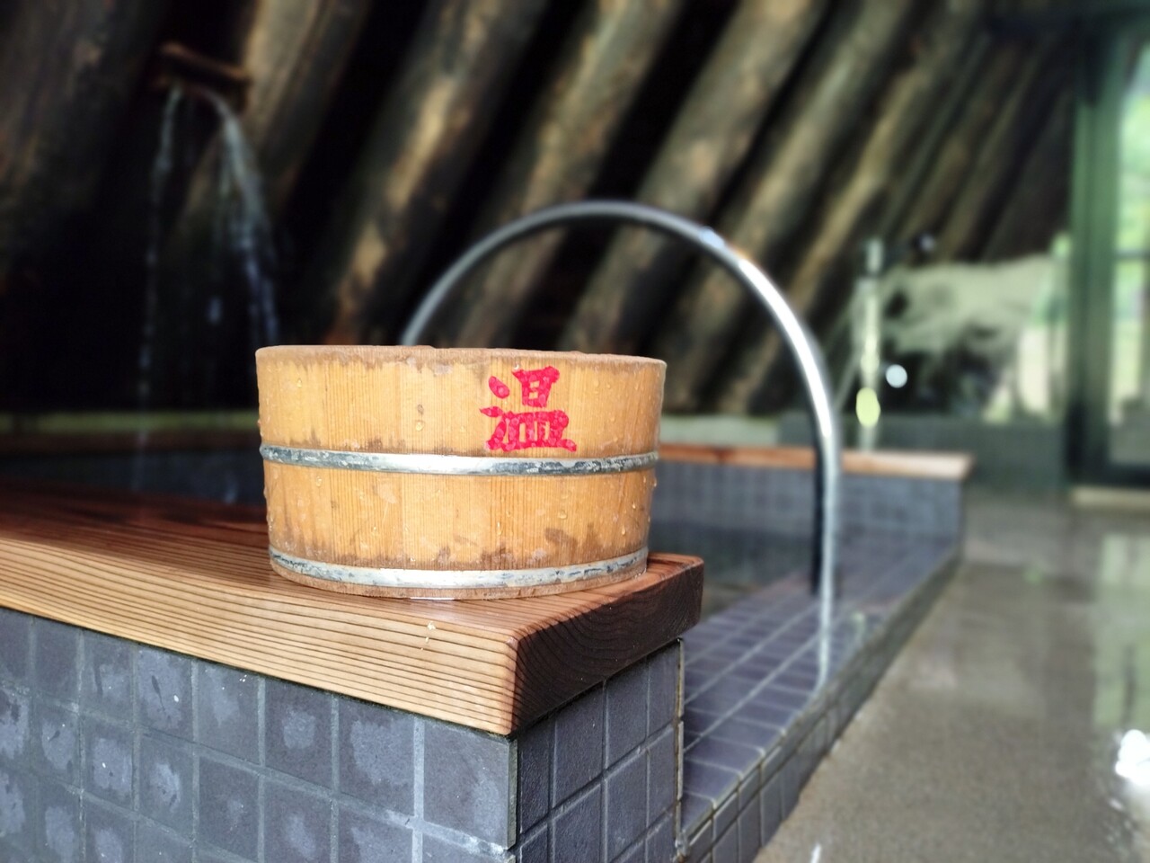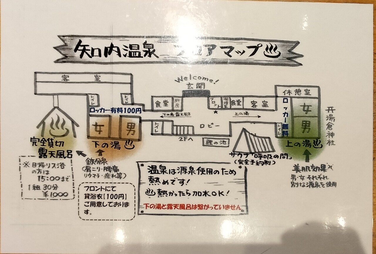 中に入り事前に予約していたので受付に行き説明を受けタオルやバスポンチョは無料で借り 水着は別途¥300って事で水着はレンタルし 上の湯にて着替えをします。途中デトックスウォーターもGET