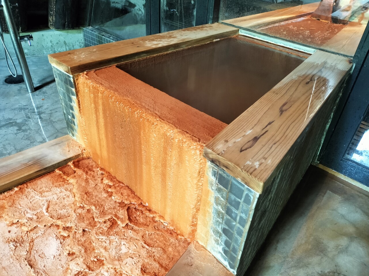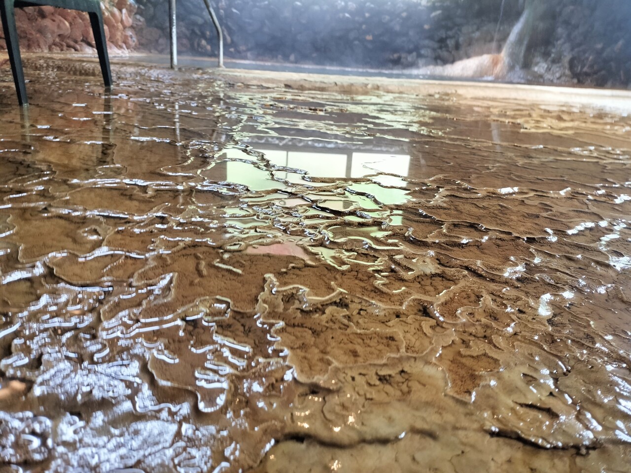 そして1年前は温泉の析出物は無かったのですが 知内温泉の温泉は成分が濃く凄い模様が形成されておりました。1年でこの析出物の模様は凄いな…