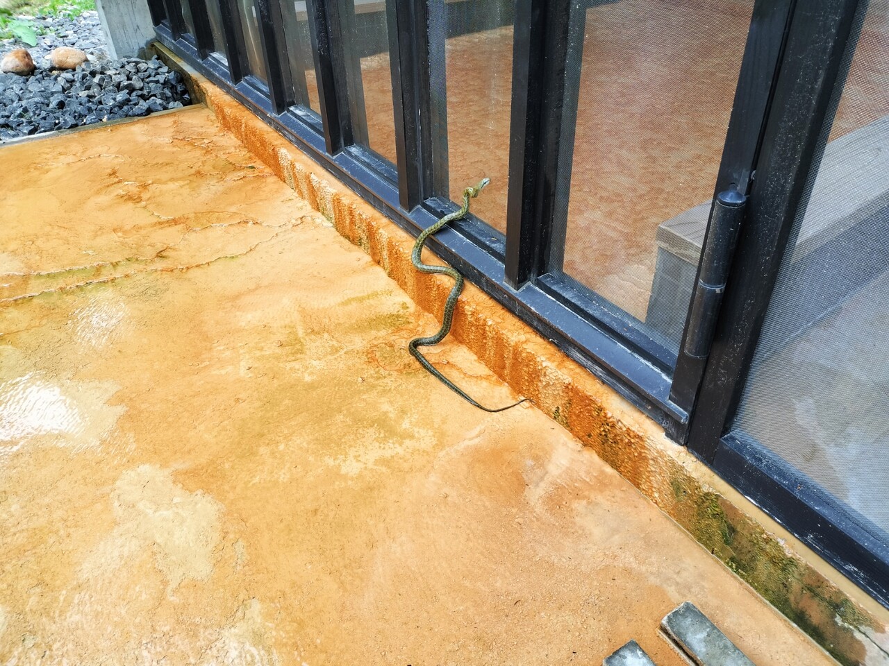 呼吸の間に入ろうとすると 蛇さんも温泉に浸かりたいようでした