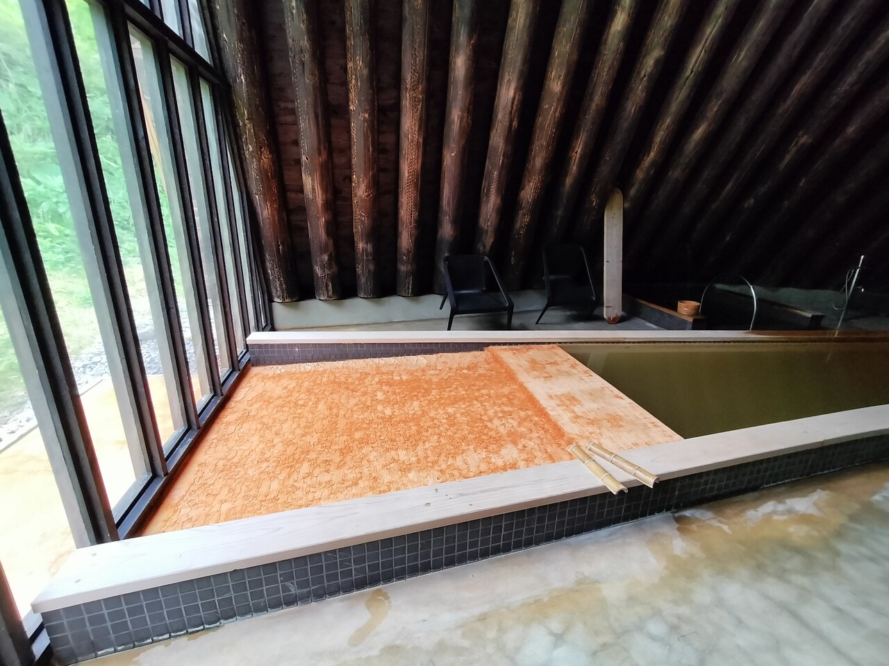 サウナの前に温泉に浸かる… ここは水深が深く立湯できるユニークな温泉で これもまた良い!泉温もちょうど良くずっと浸かっていられます
