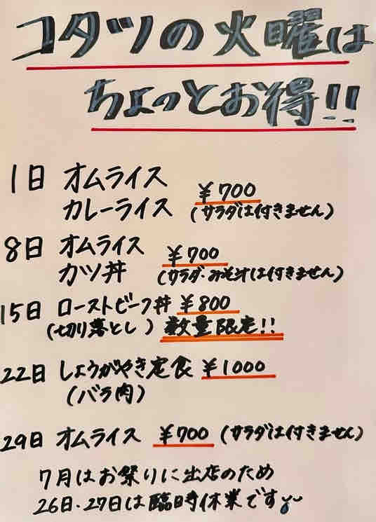 なお7月も ちょっとお得な火曜日の様です