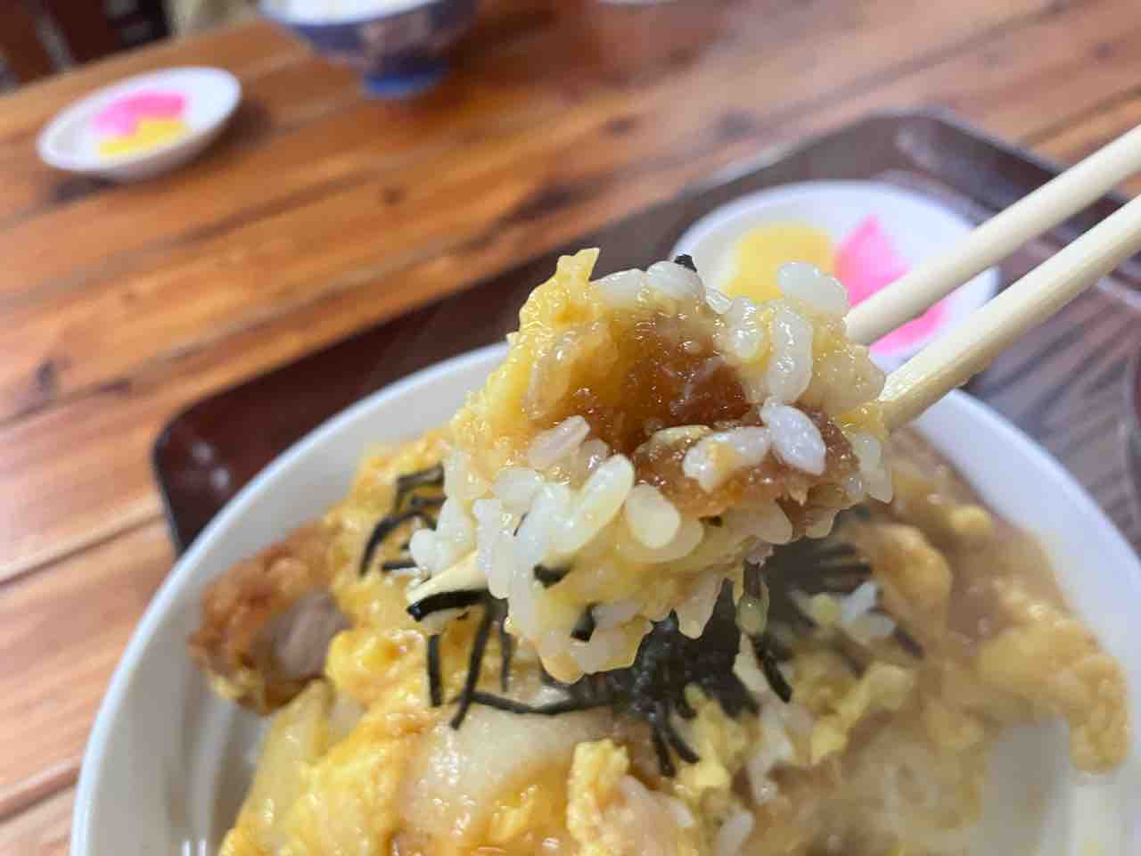 カツ丼のお出汁の香りが堪らない(豚ロースカツ、玉ねぎ、海苔、卵)