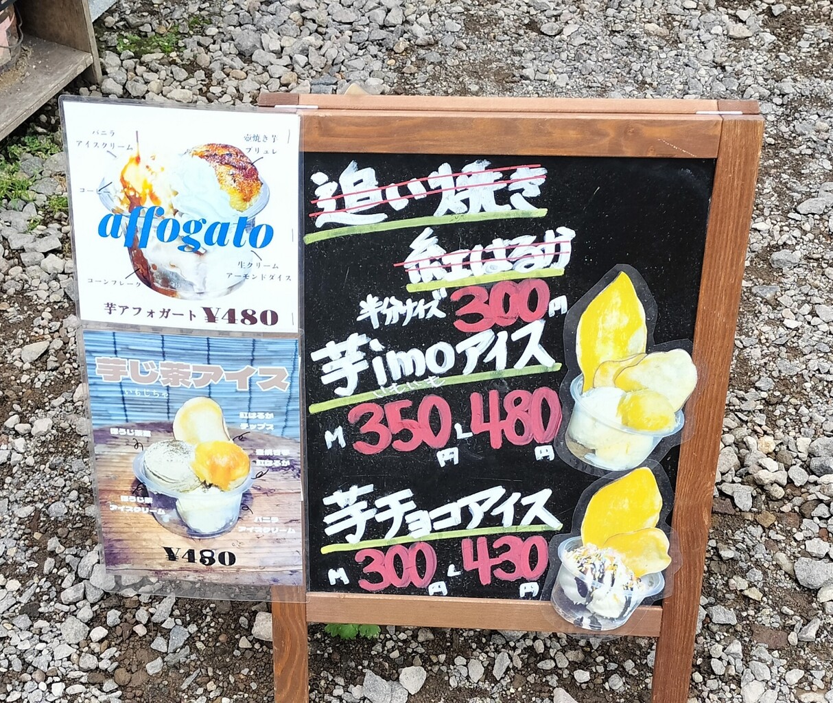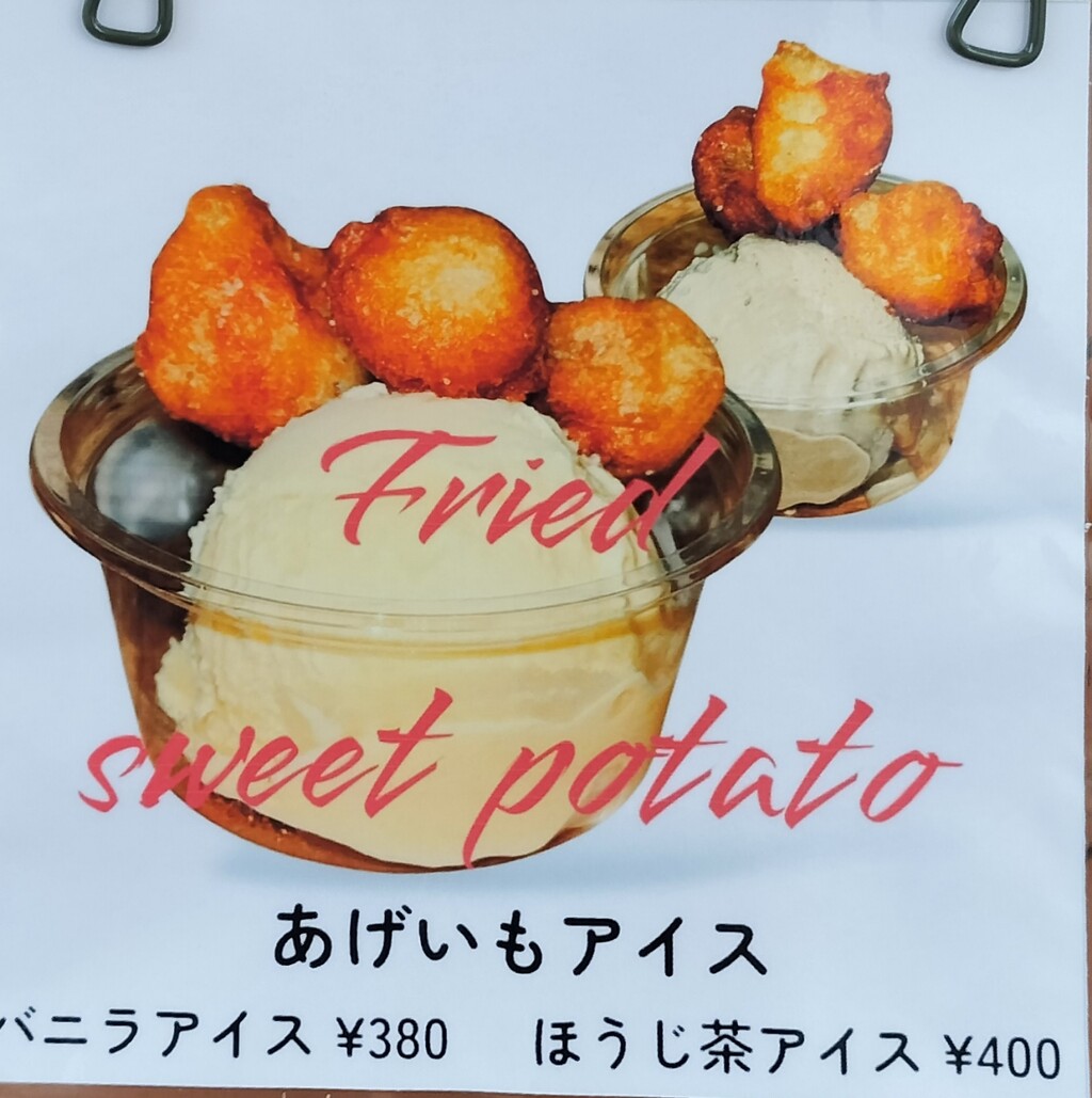 サツマイモのメニューがありまして ひと口さつまあげいも(¥350)と あげいもアイス(¥380)この2点をお願いします