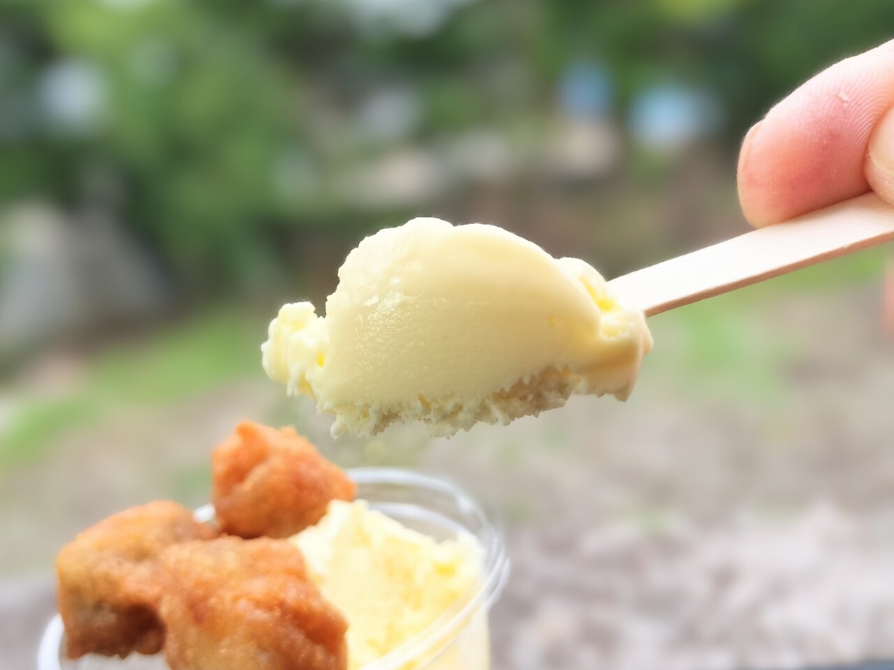 お次は あげいもアイスをキメる!バニラアイス美味っ!