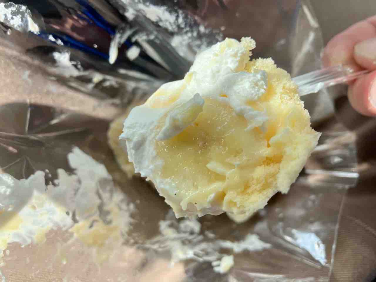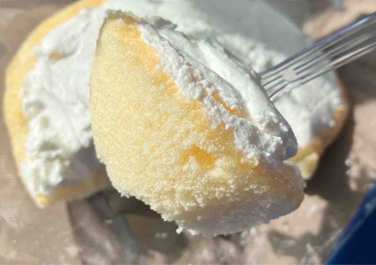 家に持ち帰ってから食べようと思いましたが 車の中でキメる事に!生クリームが沢山盛られており めっさボリューミーで食べると 甘さは控えめで 生クリームが得意ではない私でも美味しく食べられます