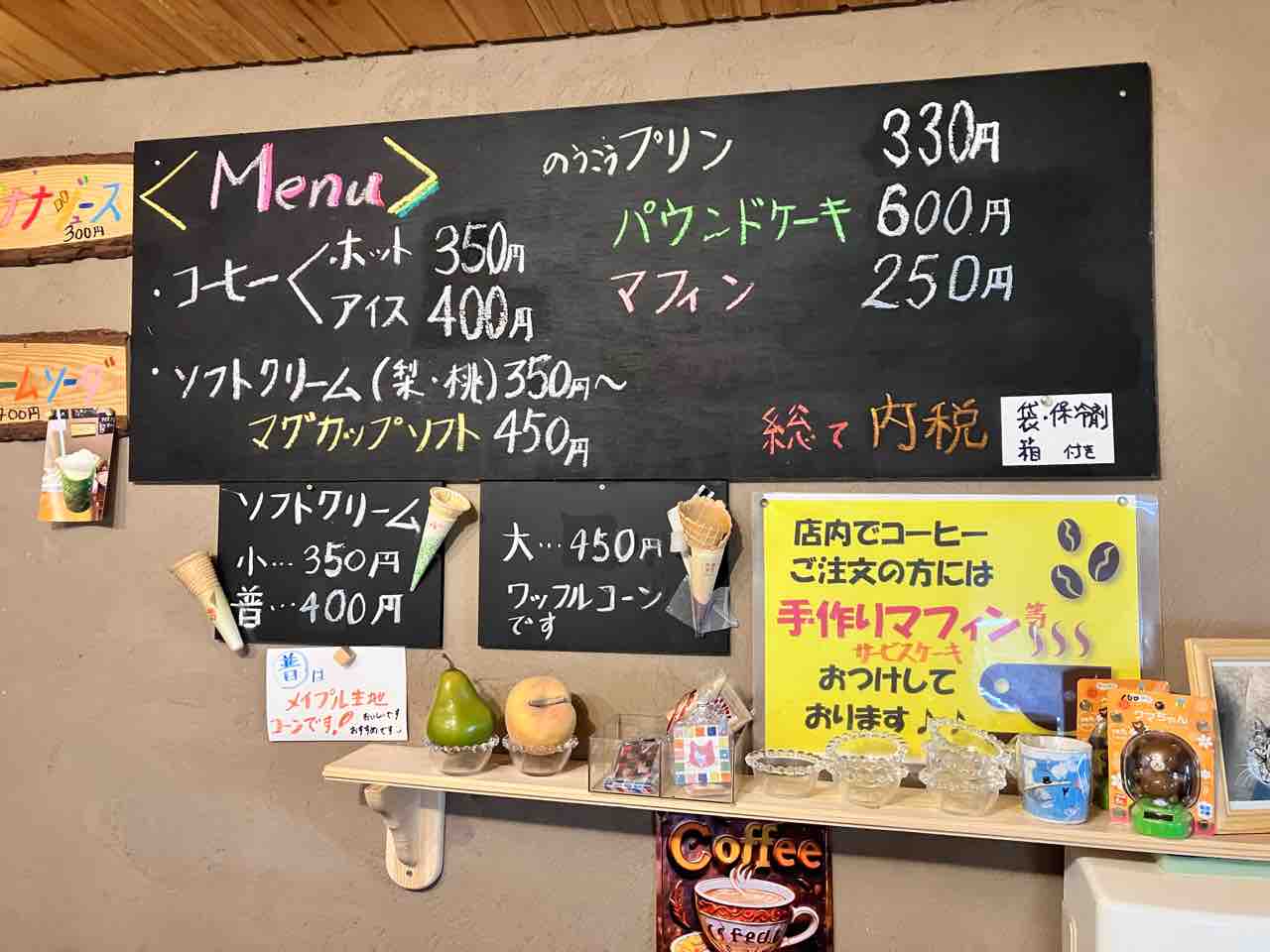 入店しソフトクリームは食べるとしてレギュラーサイズは確定の 梨か桃で悩みましたが 梨のソフトクリーム(¥400)と