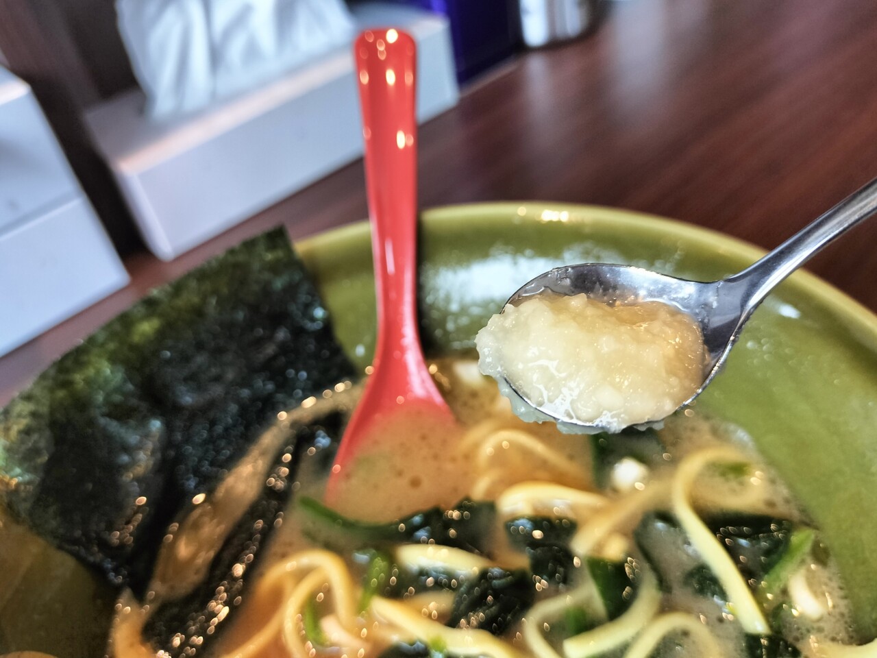 そして最後まで麺を啜って ニンニク効いた豚骨スープを飲み程なくして完食となりまさ