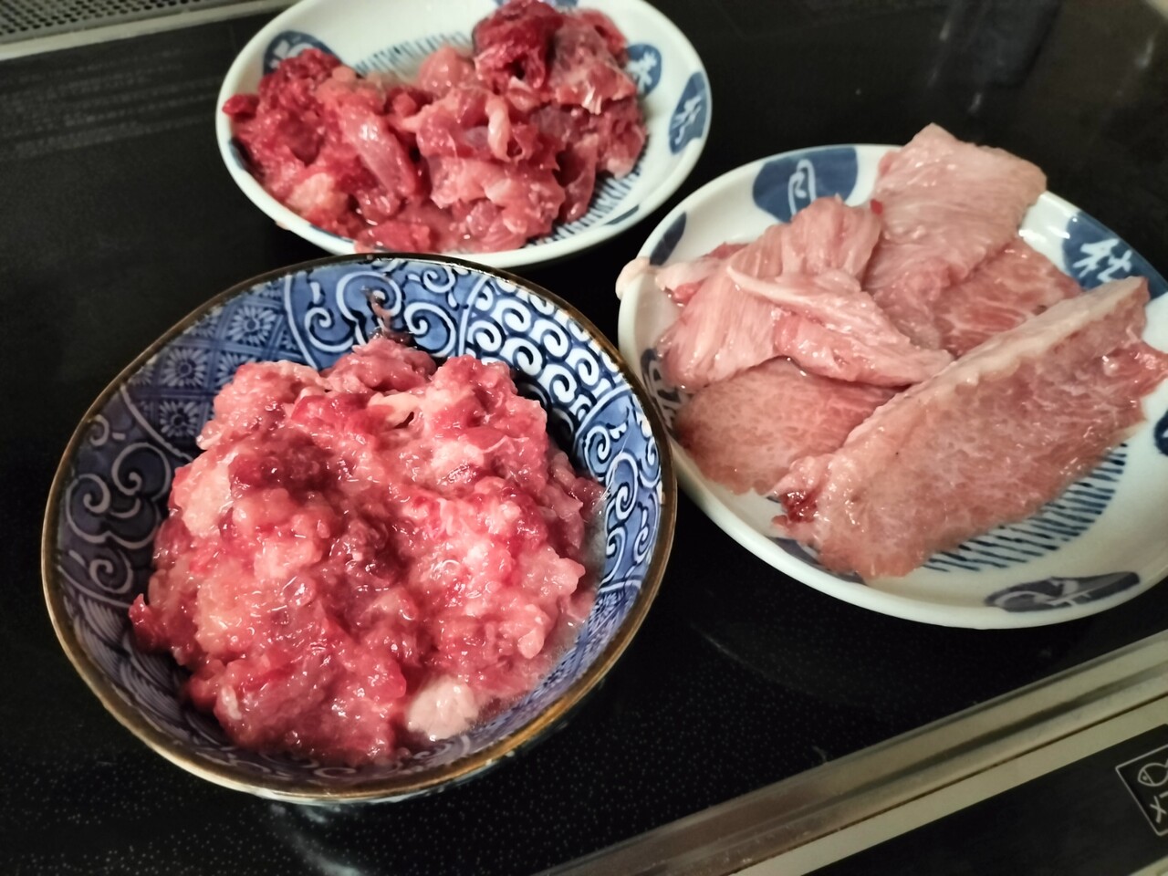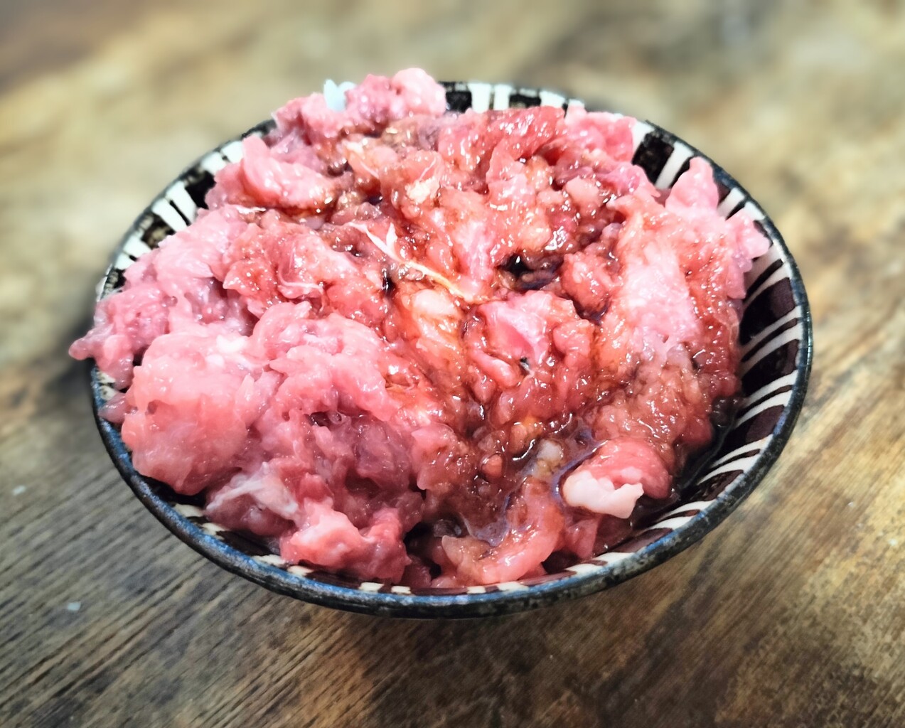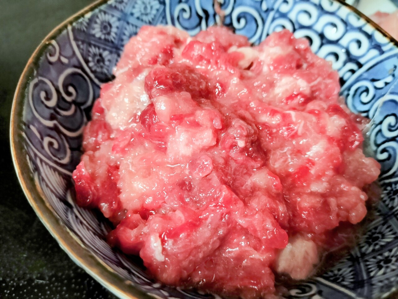 骨間(中落ち)部分の身は叩いて ネギトロにしました。ちょっと脂身ある部分も叩いてます
