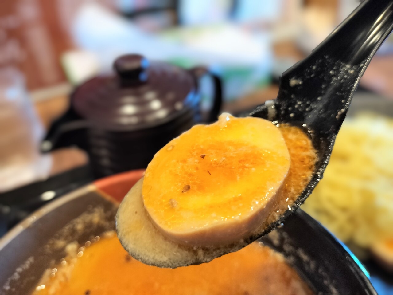 味玉をパクッと食べて