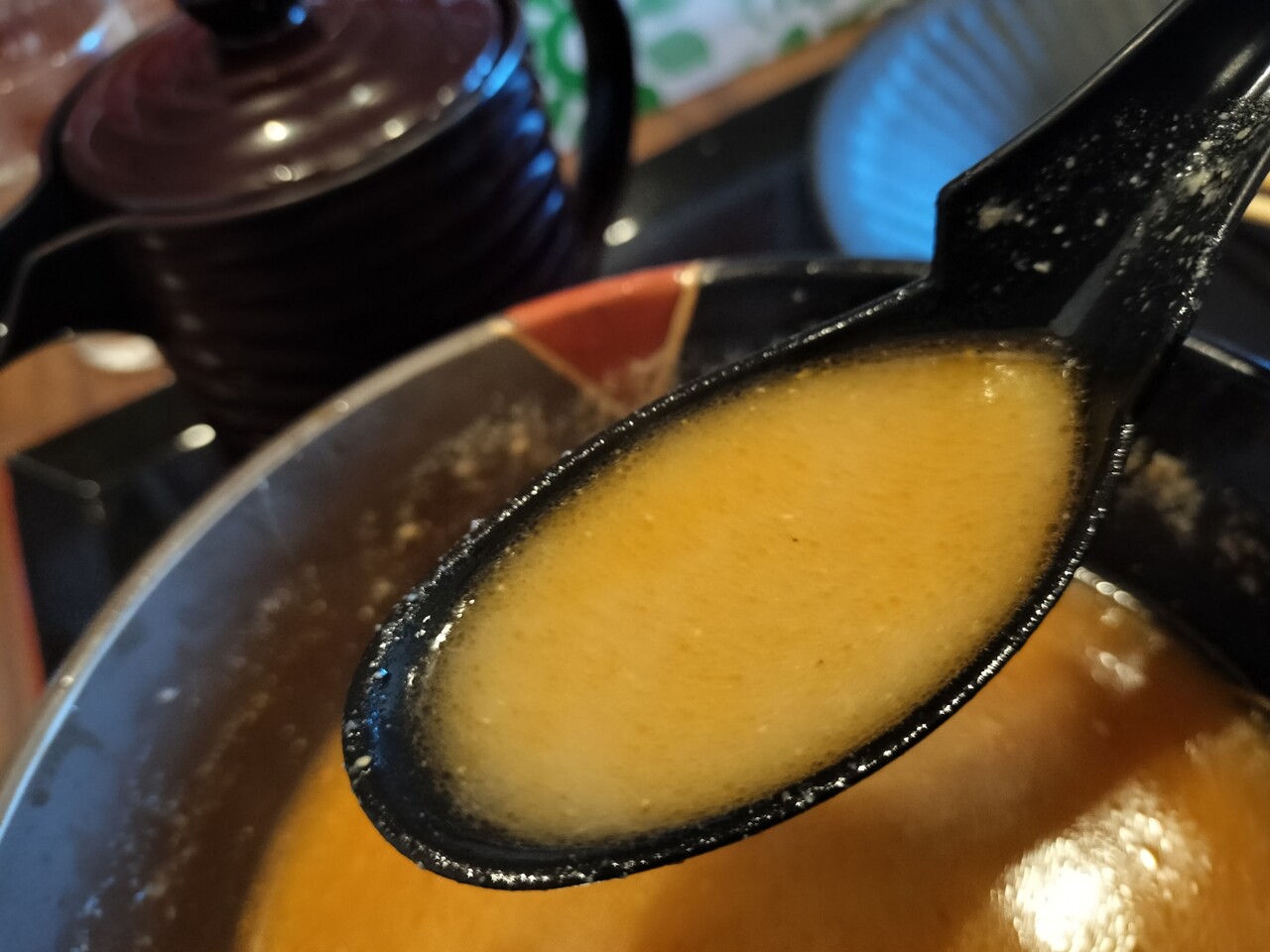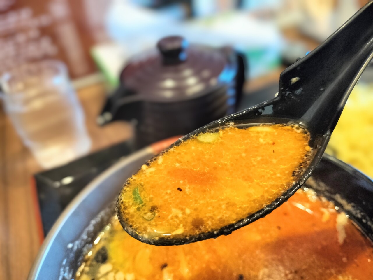 スープ単独でちょっと飲んでみるとガツンと濃くて塩っぱくてちょい辛だけど これは良い感じ!