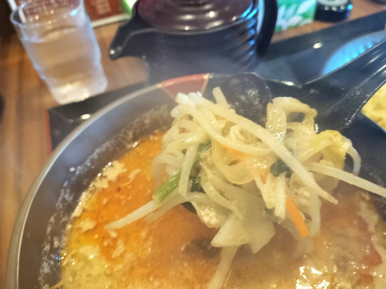 味噌タンタンたれ(もやし、人参、長ネギ、玉ねぎ、キャベツ、ほうれん草、キクラゲ、チャーシュー、挽肉)は味噌と胡麻の良い香りがします