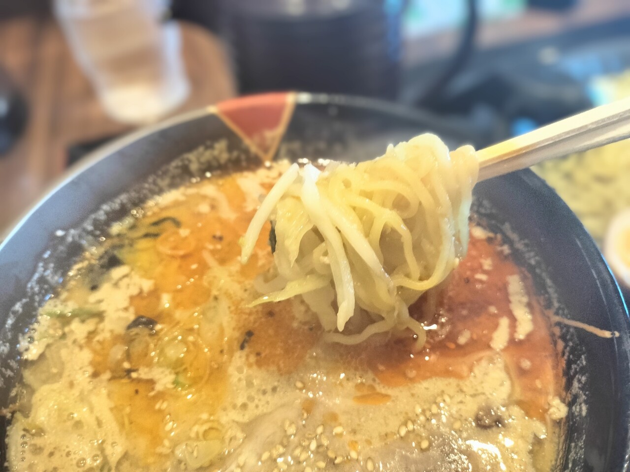 味噌タンタンたれにドボンと落としてズズっと啜ると 結構オイリーかつ塩っぱく後からほんのり辛さがやってくるのですが まぁまぁ美味い