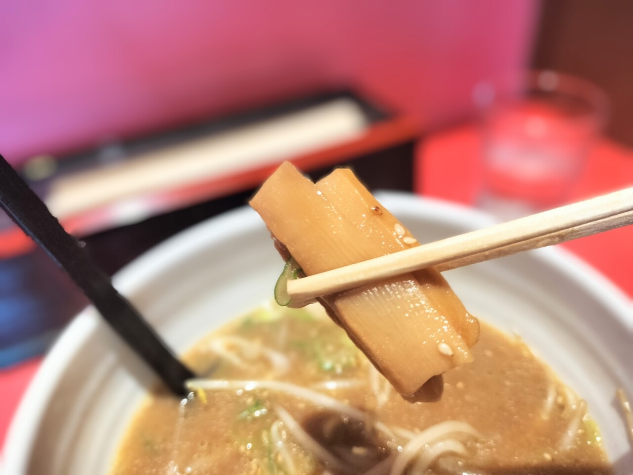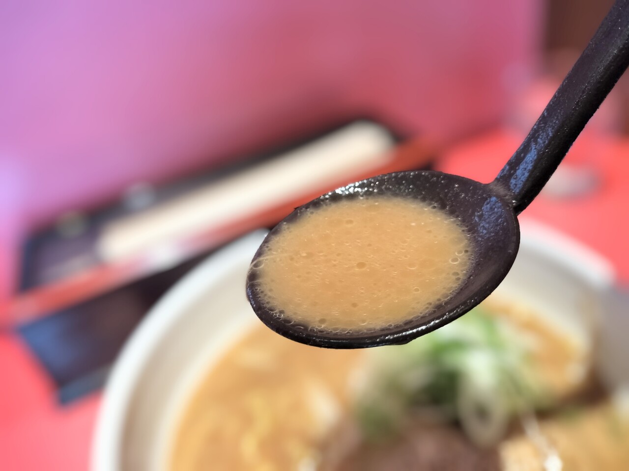 先ずはスープを頂くとコクがありつつ濃厚な味わいで醤油がたっています