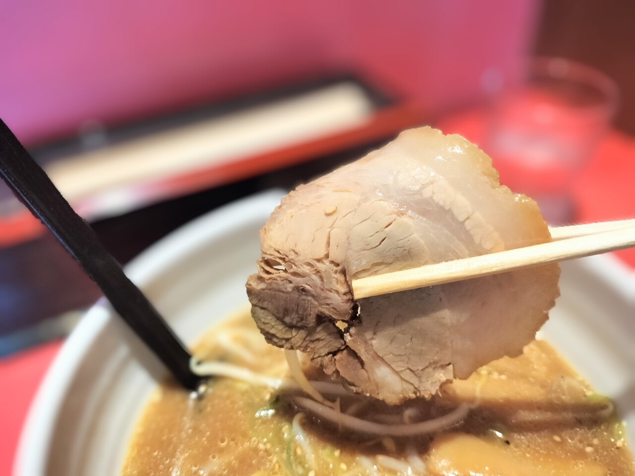 ¥500のワンコインラーメンなのにチャーシューもきちんと乗っているのが嬉しいね。そして普通に美味しい豚バラチャーシュー