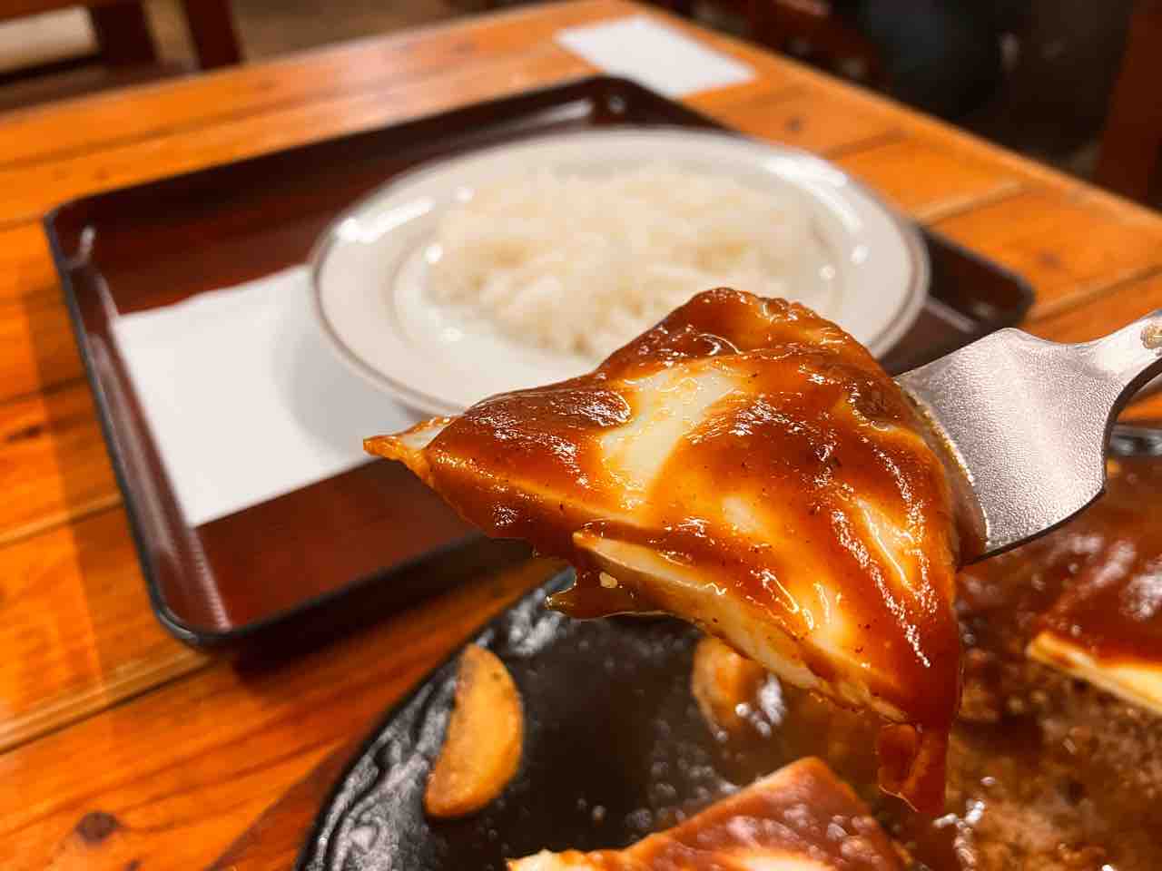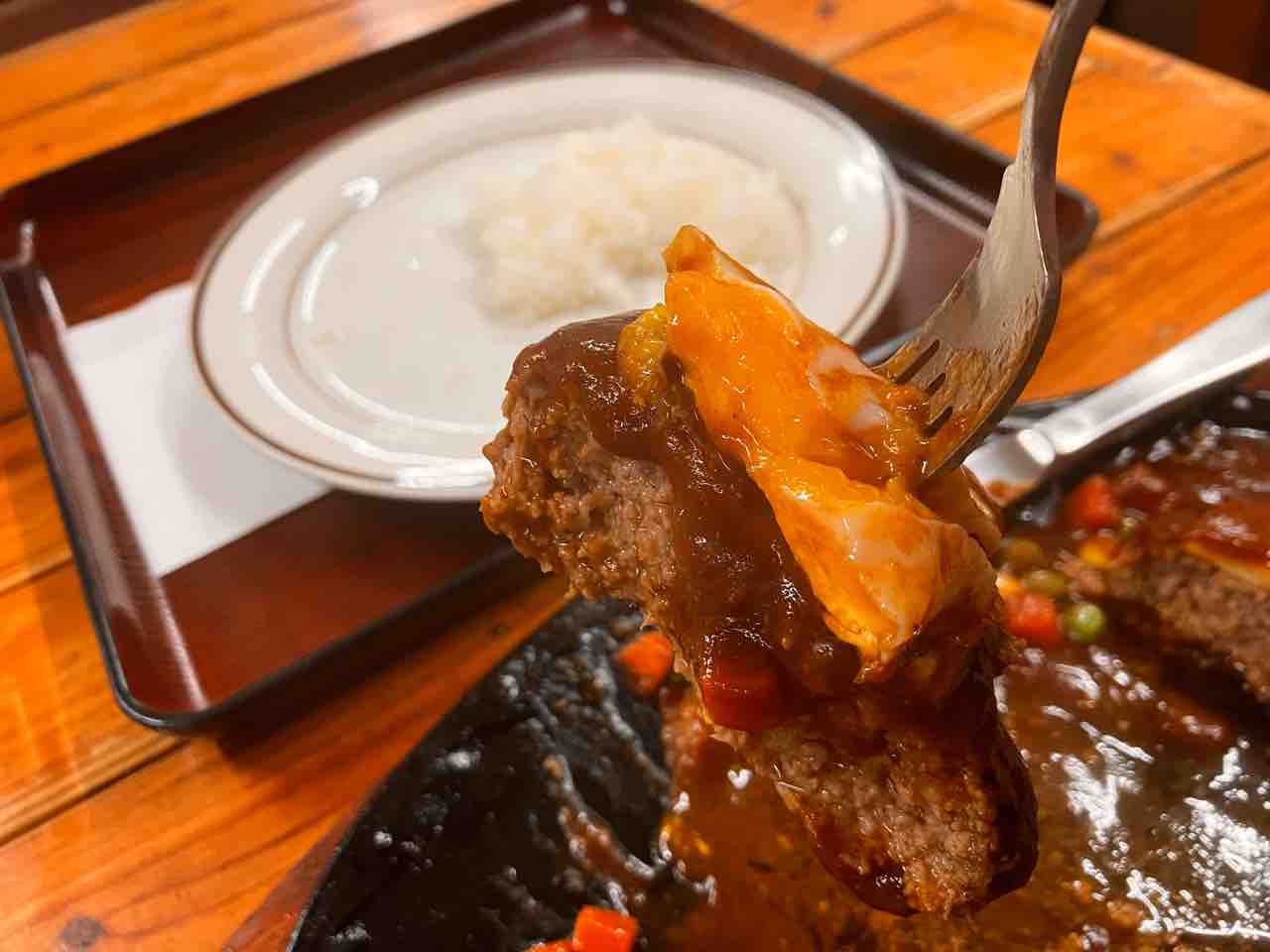 ハンバーグに乗せて 三層ハンバーグをキメると うん最高!