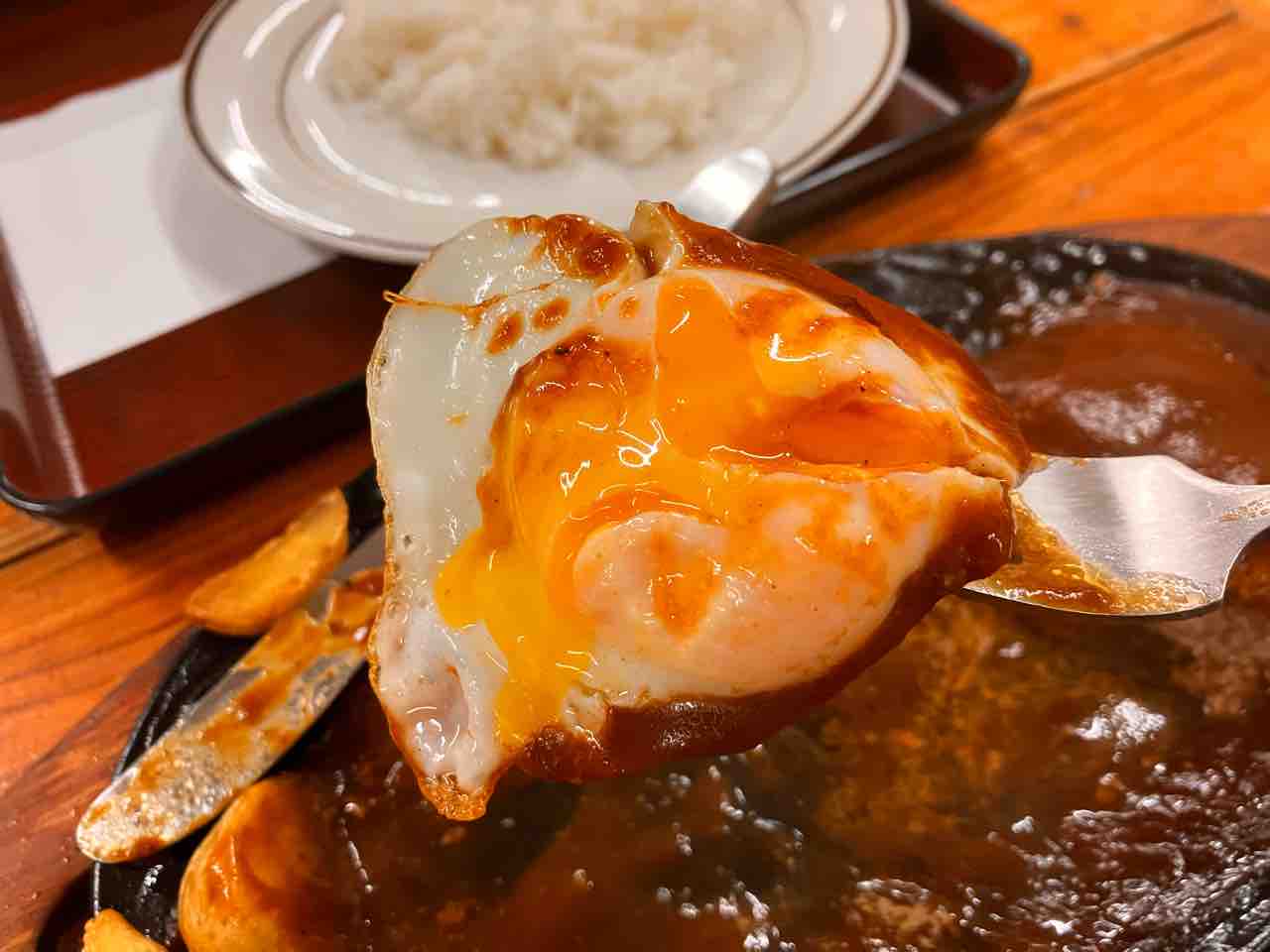 目玉焼きの白身をデミグラスソースを纏わせ食べると これも美味い!しかしデミグラスソースがバリ美味いな