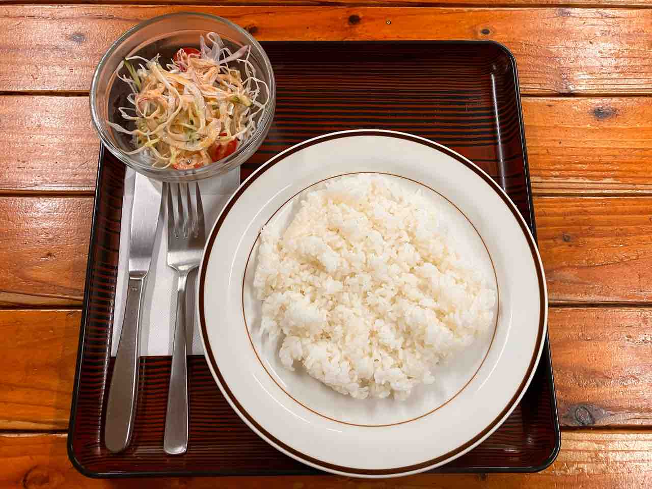 そして約10分後に ライスとサラダが先に運ばれてきました