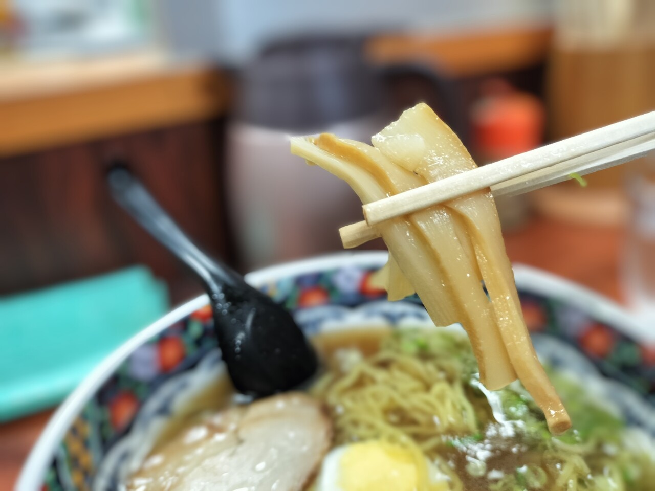 チャーシュー、メンマ、長ネギ、ゆで卵の構成となっております