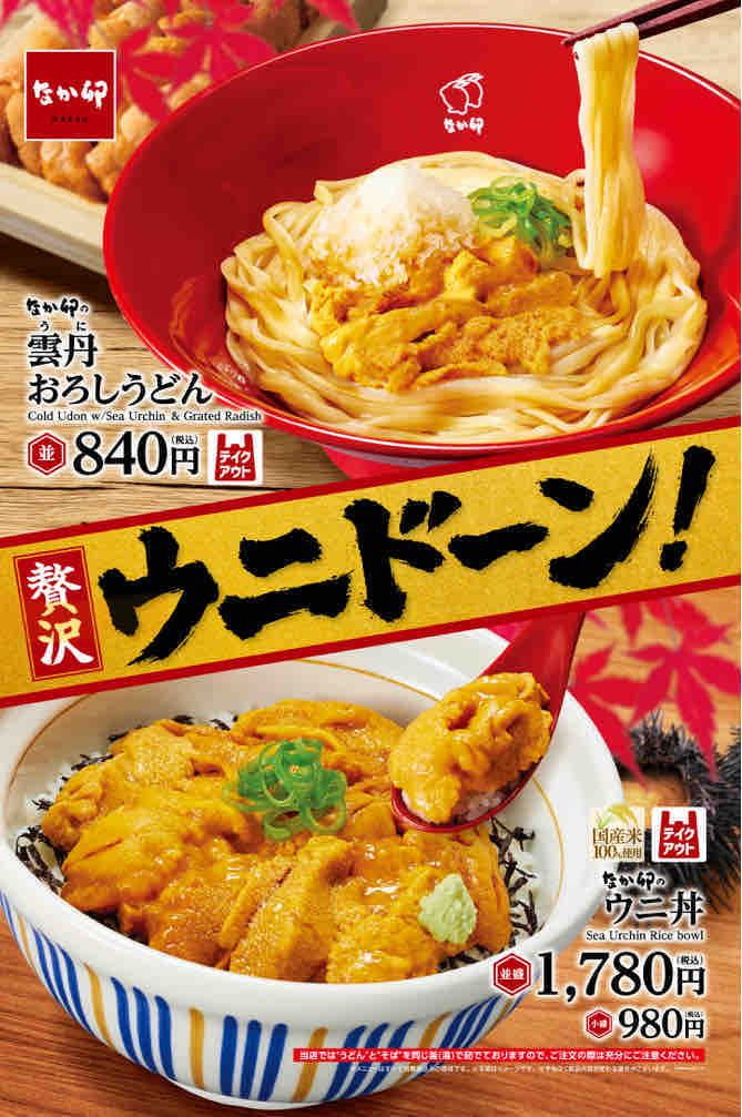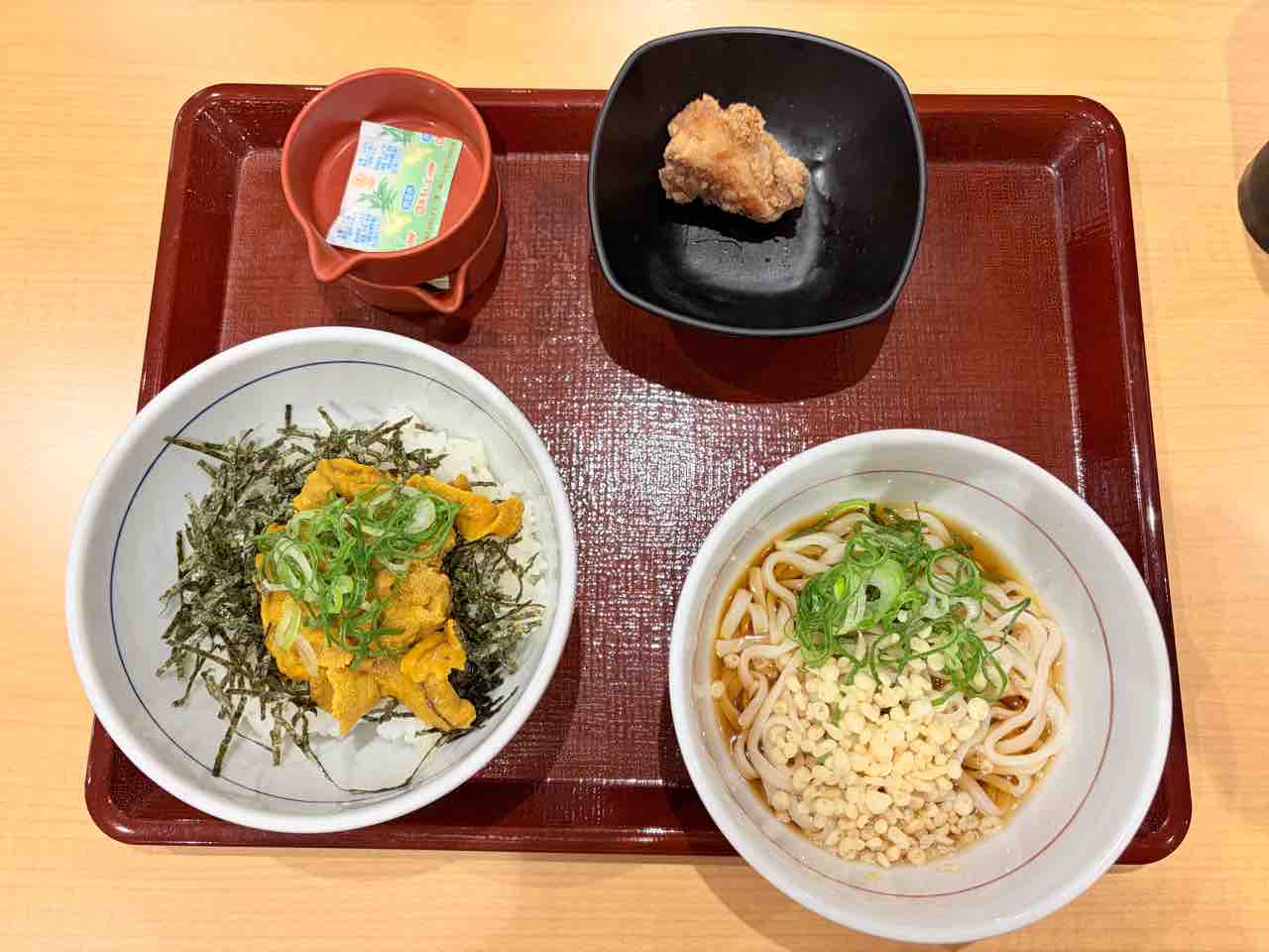 函館市昭和に店舗のある「なか卯 函館昭和店」に伺い期間限定のメニューである うに丼ミニサイズと うどんと唐揚げをキメてきました!