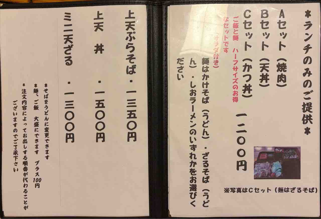 メニュー表… 麺類、丼物、ご飯物