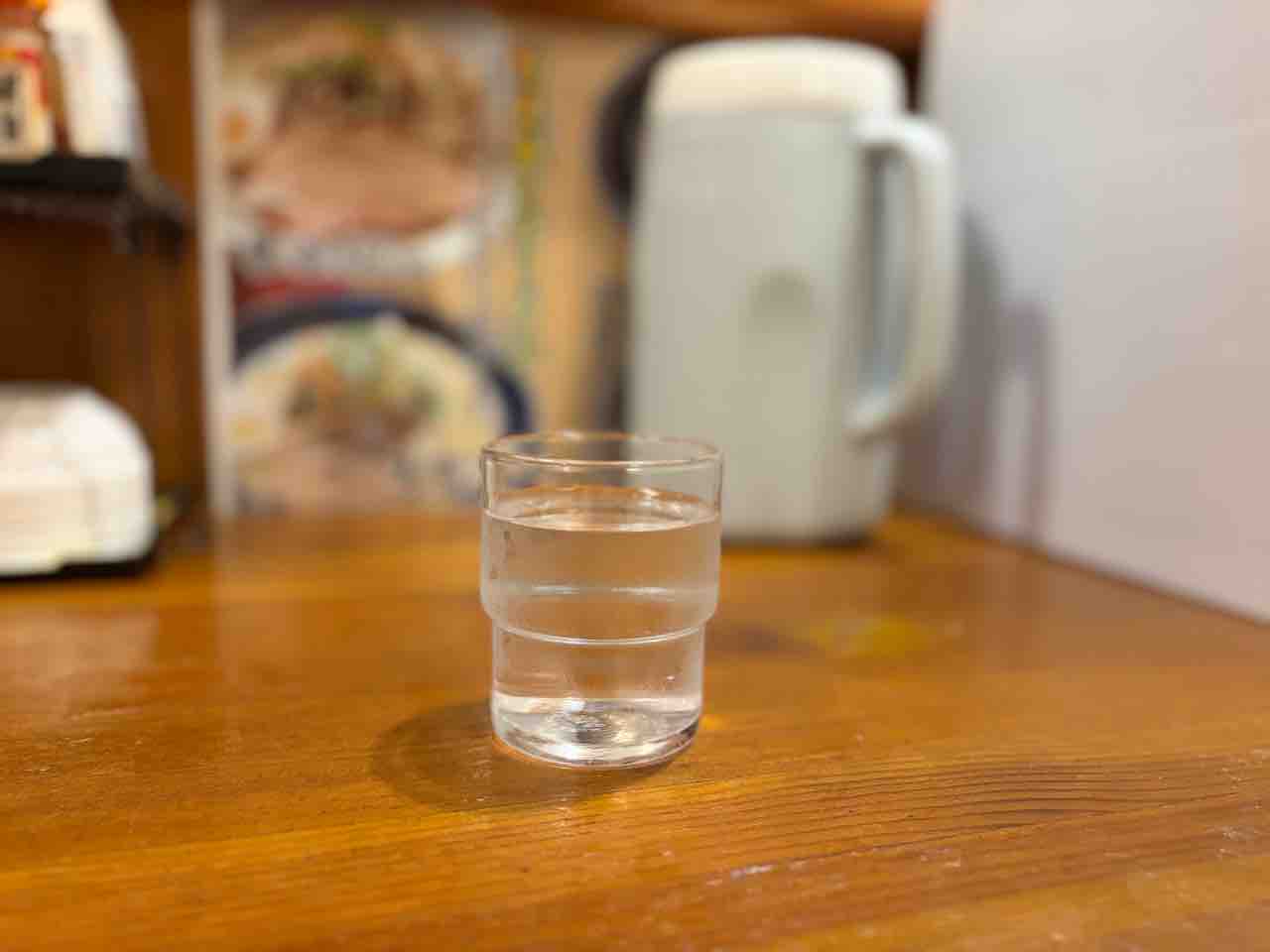 カウンター席に腰を下ろしてお水をセルフります