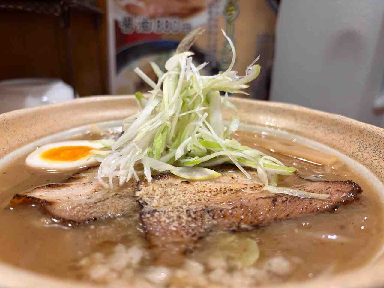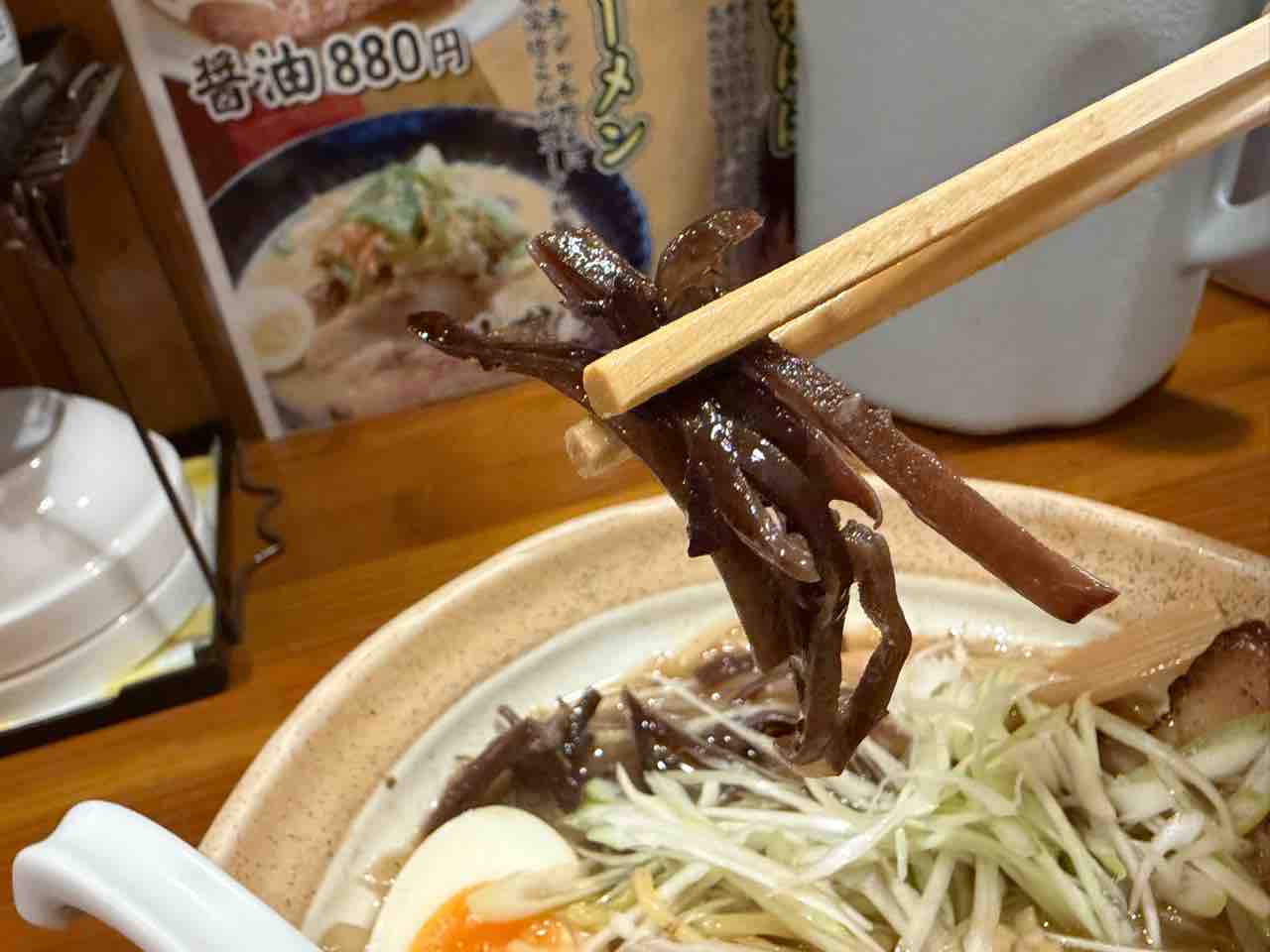 具材は 長ネギ、もやし、チャーシュー、味玉、キクラゲ、メンマ等