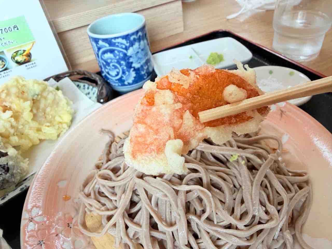 野菜の天ぷら 盛り合わせ(¥700)も良さげだなと思い この2品でオーダーします(なお このランチは知り合いの方にゴチになった模様)