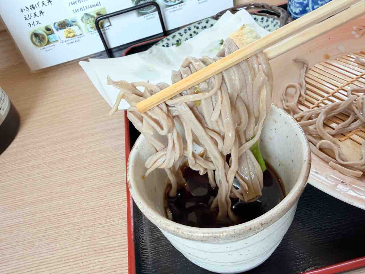 わさびを乗せて食べると わさびのツーンとした辛さが鼻を抜け その後甘みが残り蕎麦の美味しさをより引き立てる