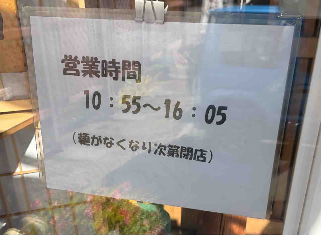 10時55分〜16時05分(蕎麦無くなり次第終了)