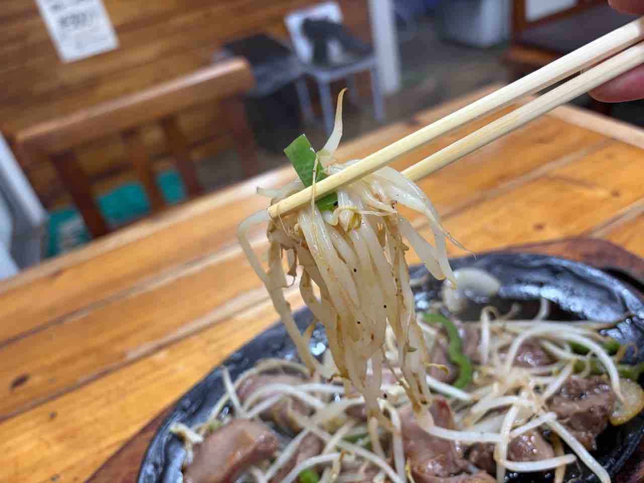 そしてモヤシとピーマンをタレに絡めて食べる