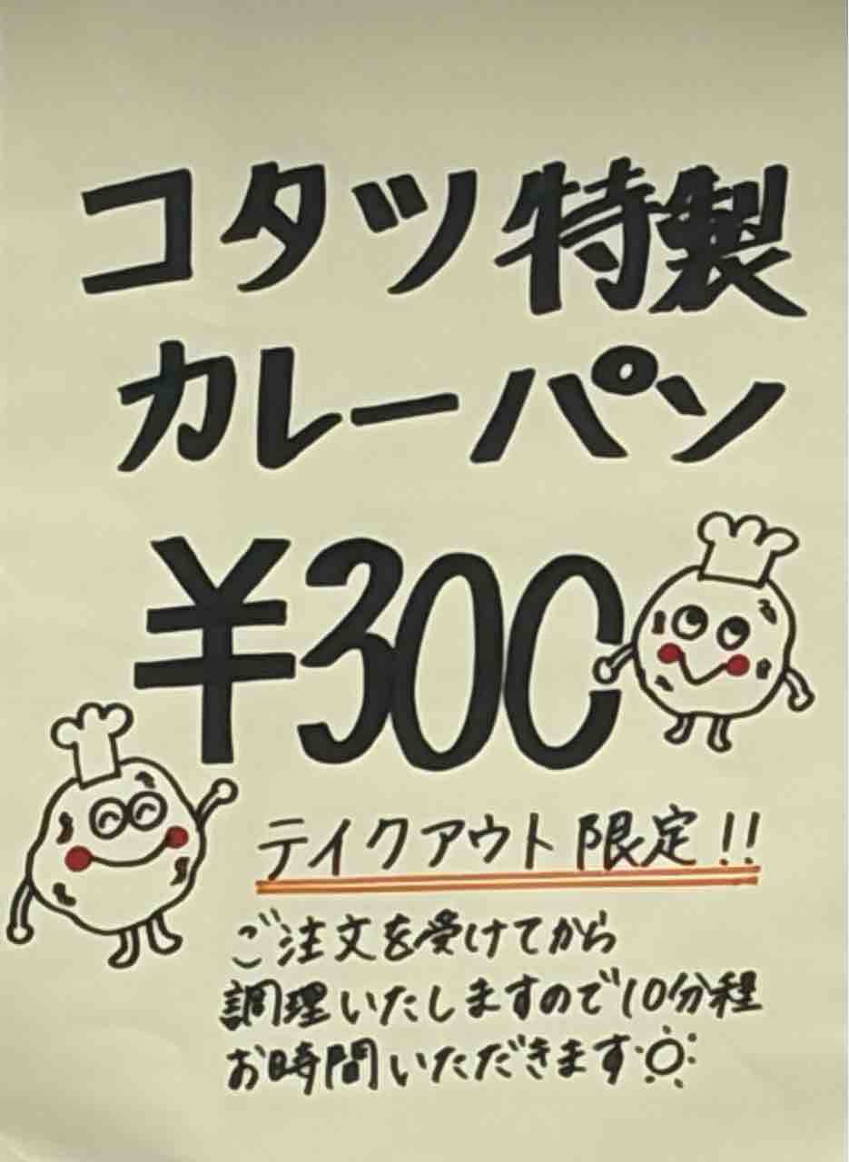 テイクアウト限定で コタツ特製カレーパンもあるようですが これは次回にでも購入したいと思います