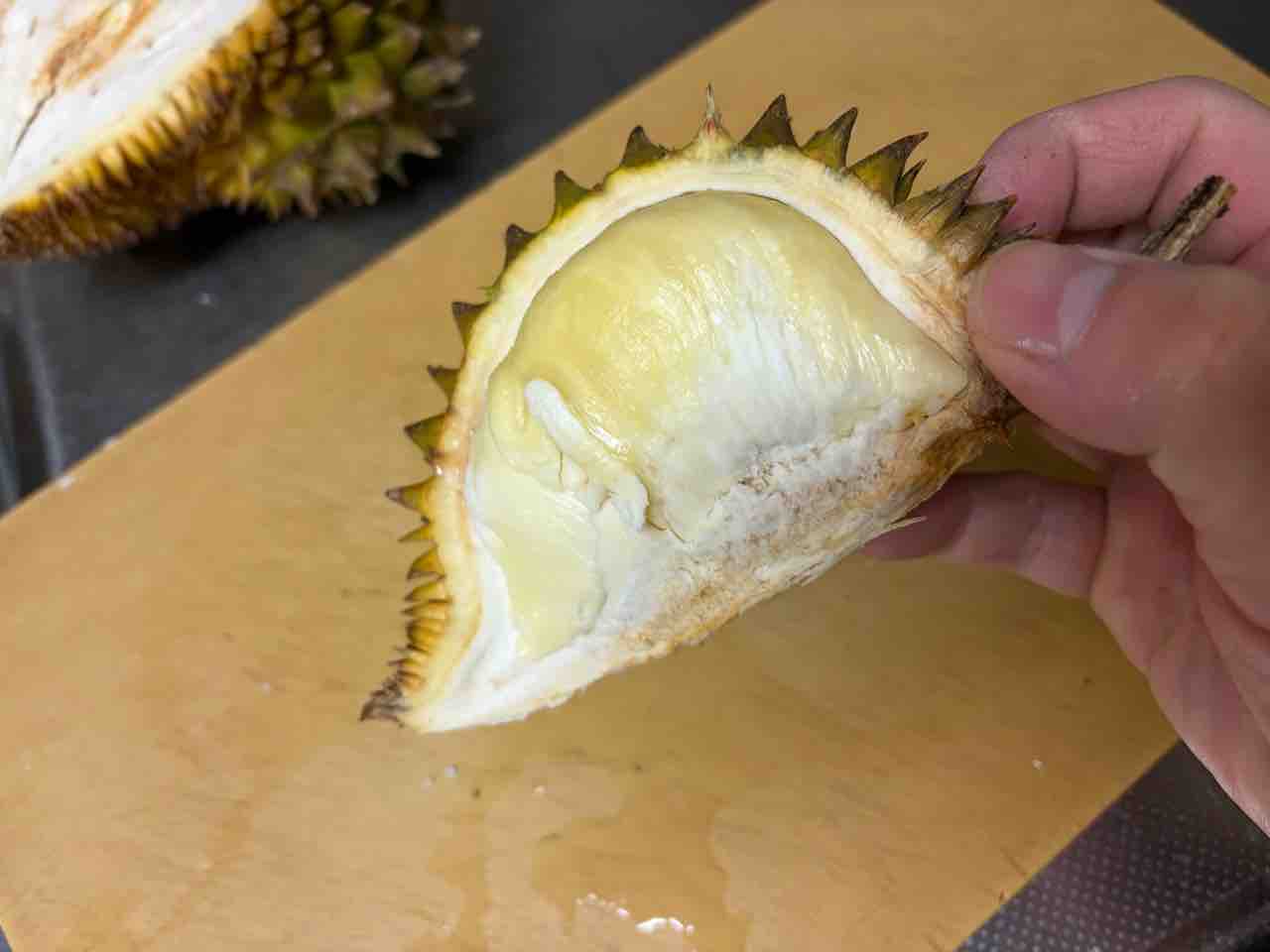 生で食べるのも良いけど 冷凍してシャリシャリにして食べるも良し、冷凍したドリアンでスムージーなんか作っても美味しそうだなと