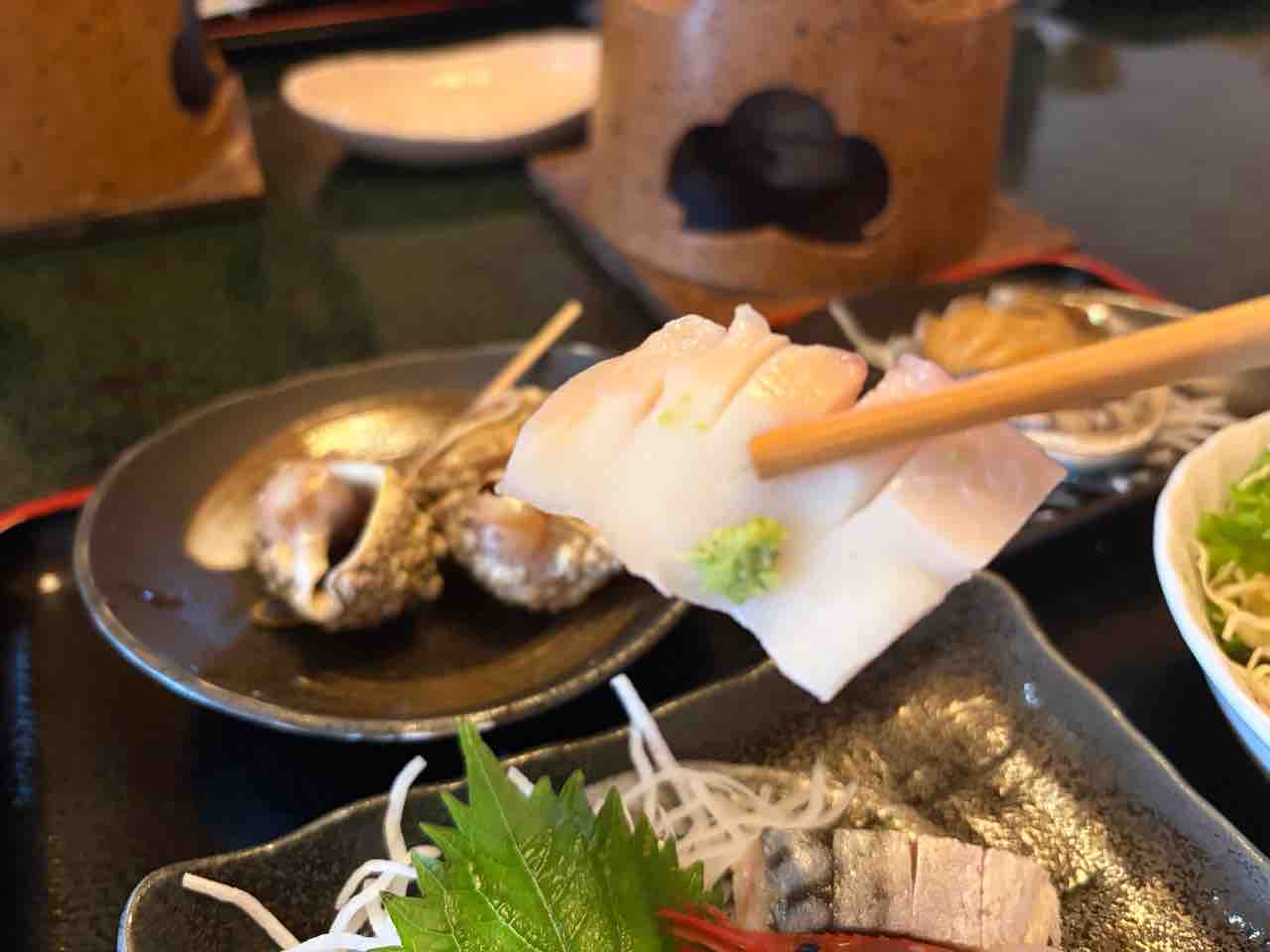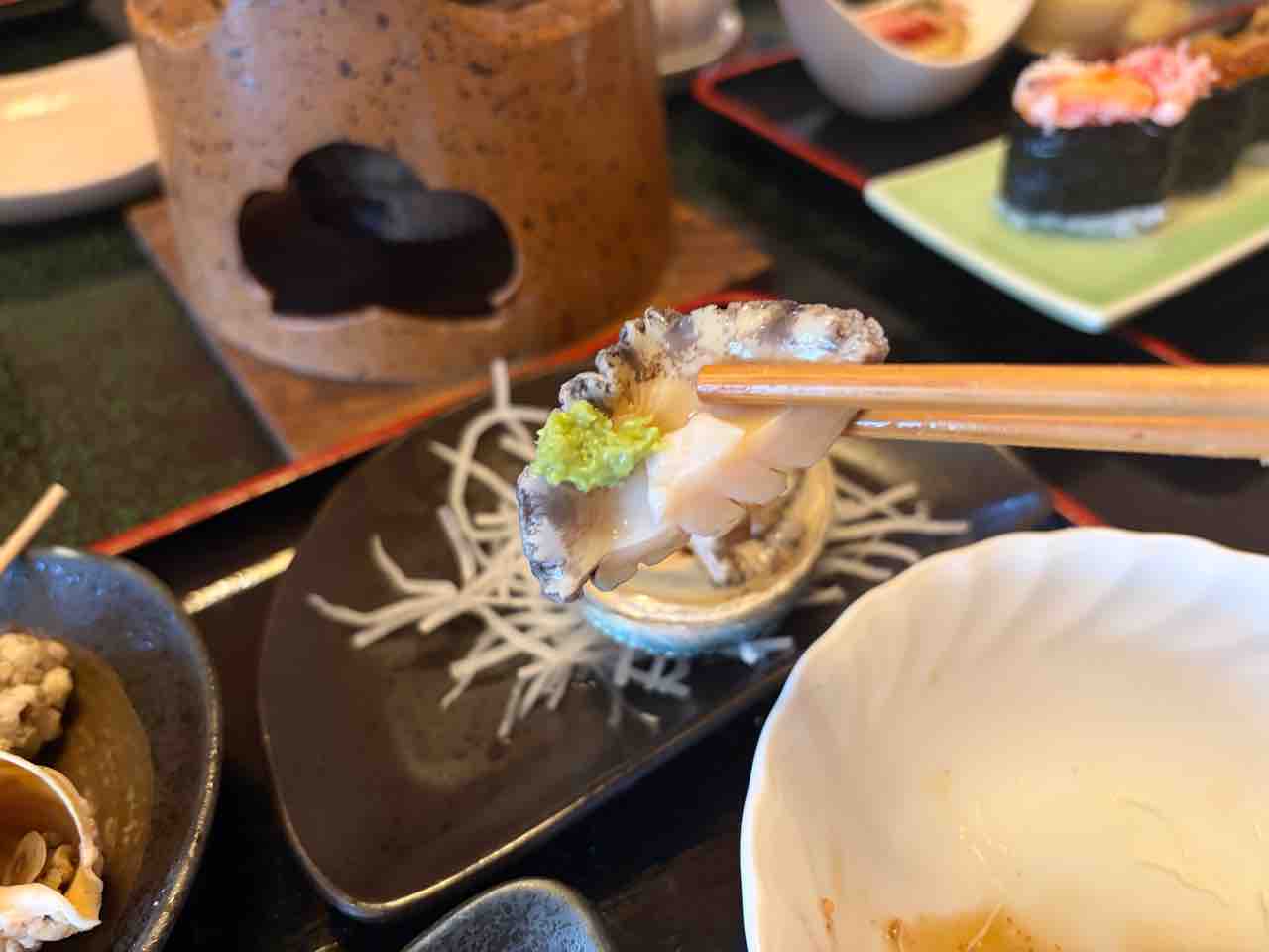 お次は鮑のお造りをキメる!コリコリ食感で噛み締める毎に磯の香りと鮑の甘みが口の中に広がって美味いねー