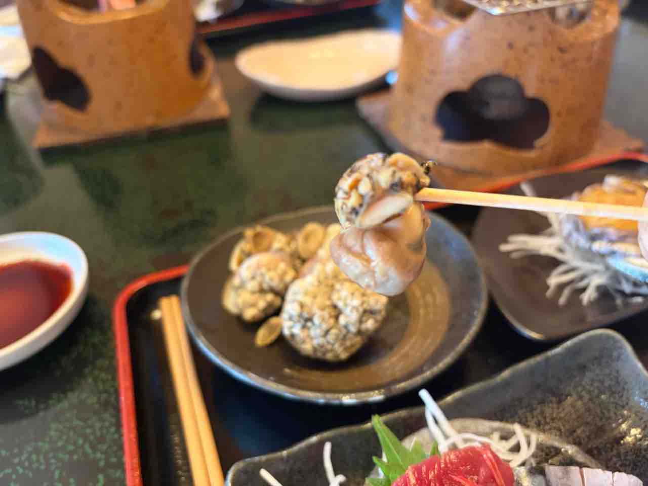 最初に煮つぶを食べると うっすらとしたお出汁とつぶの旨みが相まって美味いなー