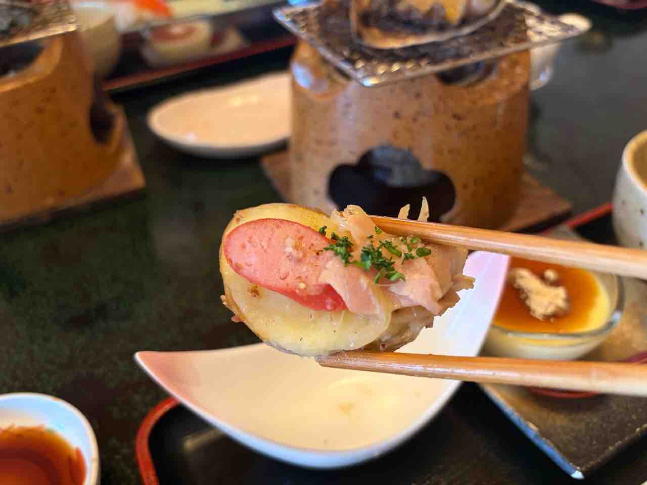 途中で小鉢のジャガバタ ソーセージ的な?ものを挟む