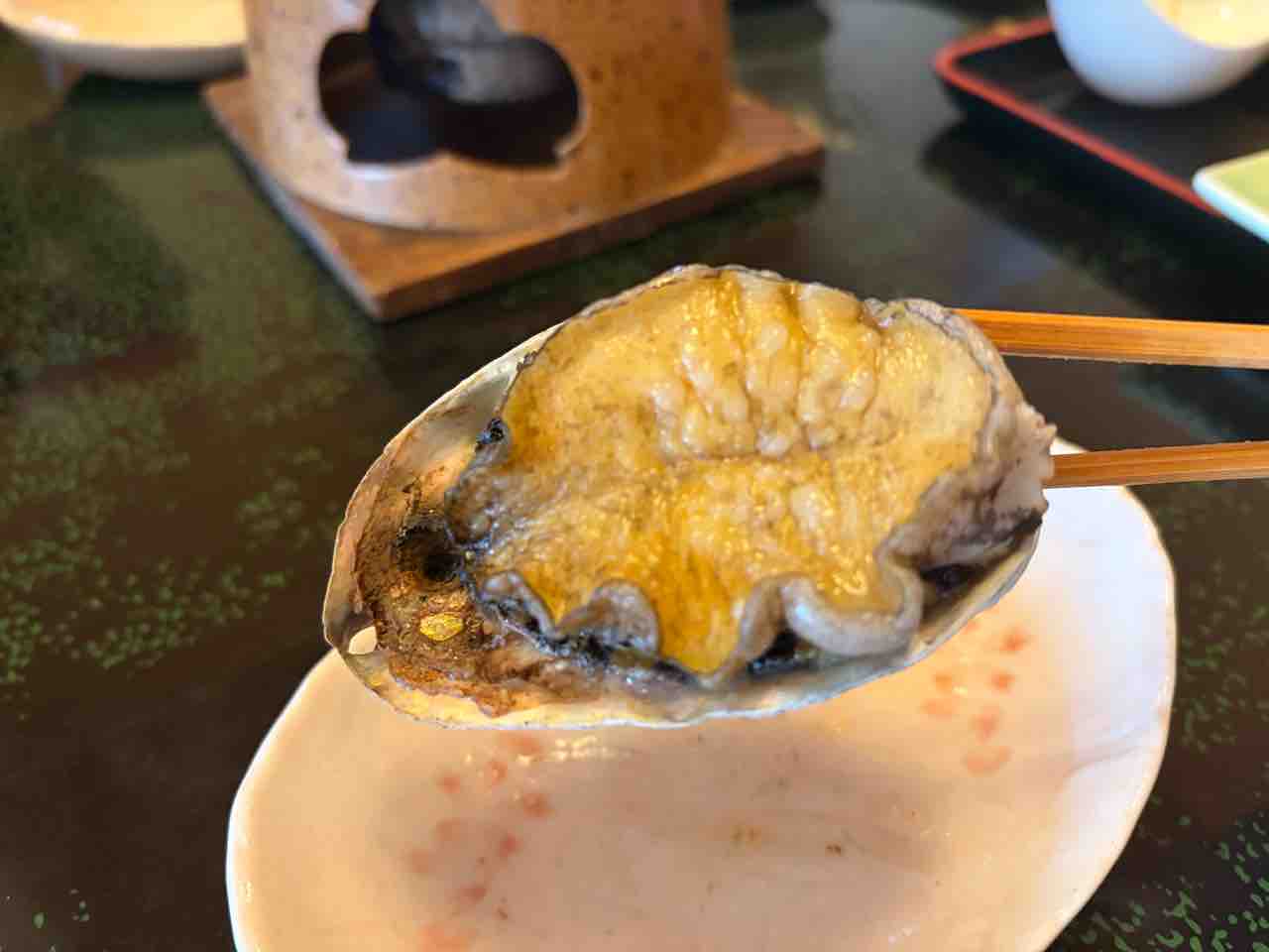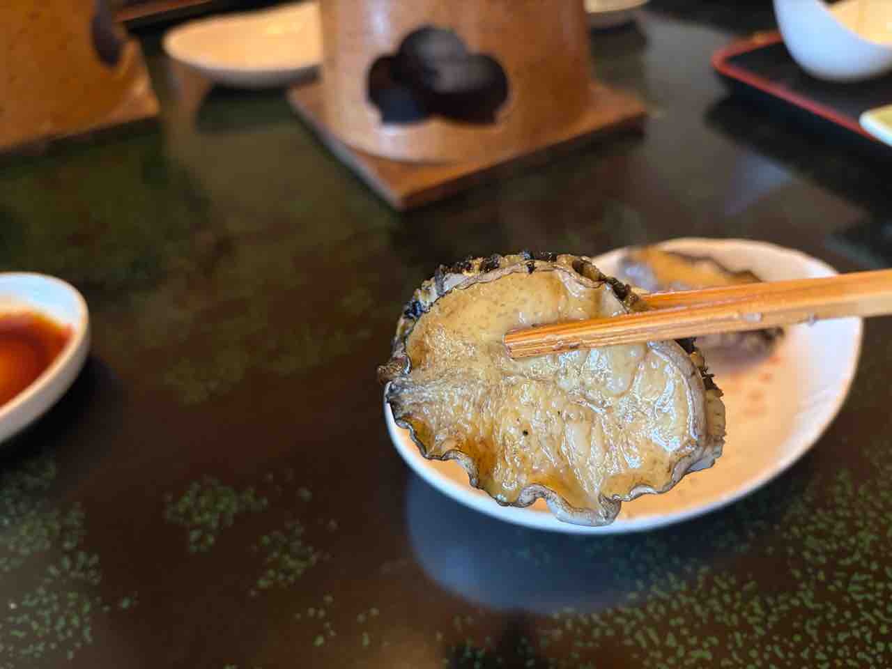 2個目もパクりと食べる!鮑は生も良いけど 焼いた方が個人的には好きかも