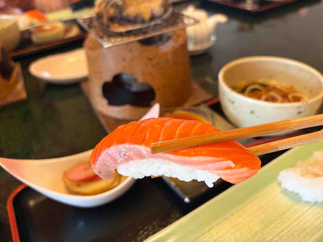 お次は刺身を… サーモンの昆布〆は旨み半端なくてバリ美味である!